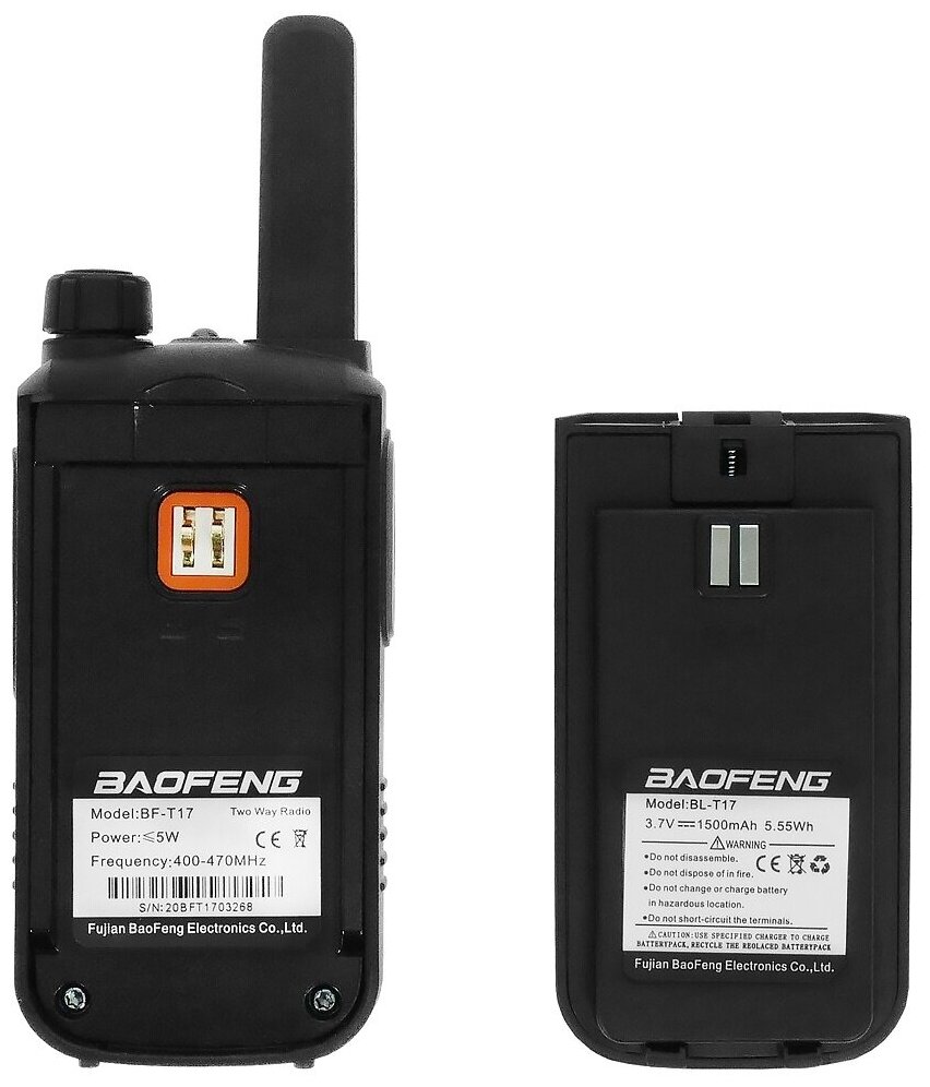 Набор раций Baofeng BF-T17/2 аналоговые, 2 Вт, до 6 км, Два режима мощности, VOX, 1500 мАч, фонарик интересное: