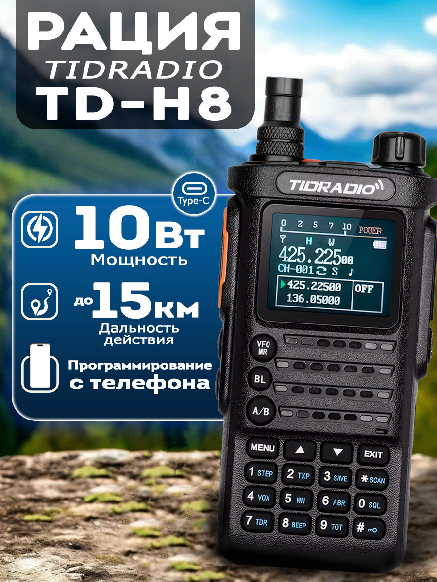 Радиостанция Tidradio TD-H8 10W с аккумулятором 2500 мАч, USB Type-C интересное: