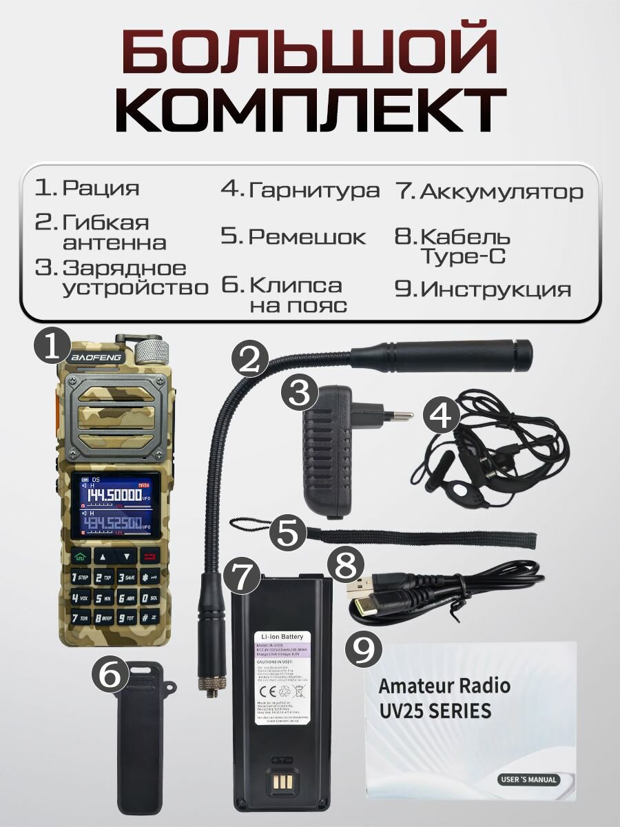Рация Baofeng UV-25, мощность 10W, радиус до 15 км, 5200 мАч, Цвет Песочный интересное: