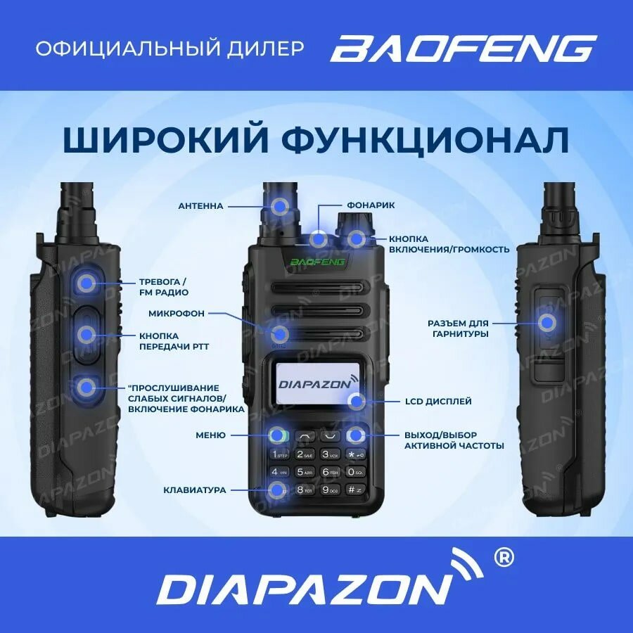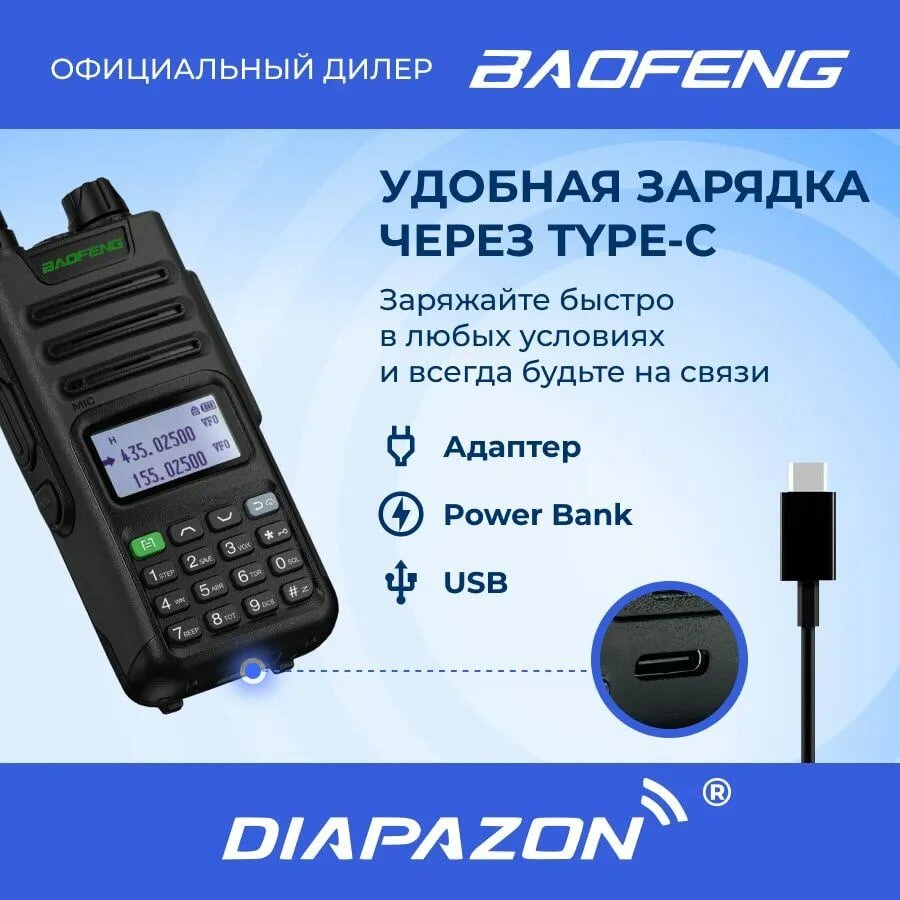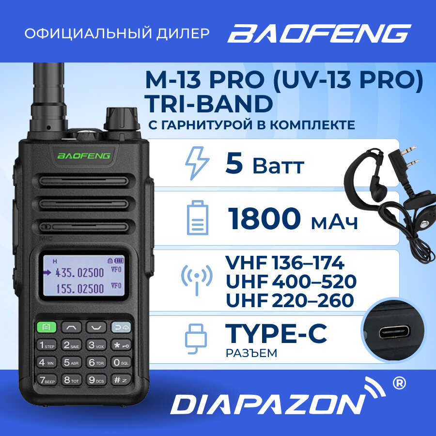 Рация BAOFENG M-13 PRO (UV-13 Pro) 5W TRI BAND TYPE-C с гарнитурой, цвет черный интересное: