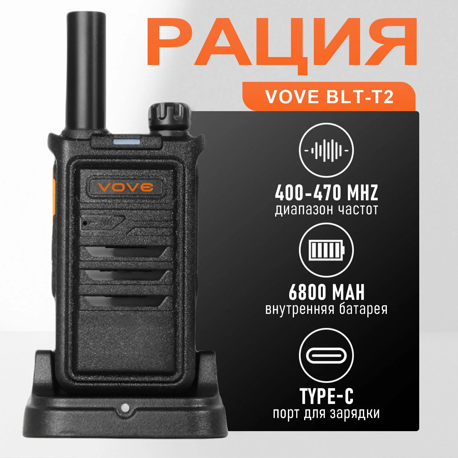Портативная двухдиапазонная радиостанция BLT-T2, 12 Вт, 6800 мАч, Type-C интересное: