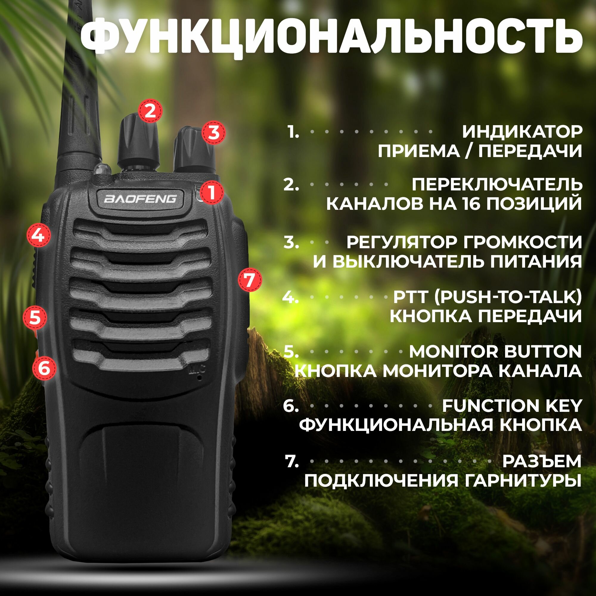 Комплект раций 8 шт Baofeng BF-888S + Гарнитура для охоты и рыбалки, для туризма, автомобильная, для стройки, страйкбола интересное: