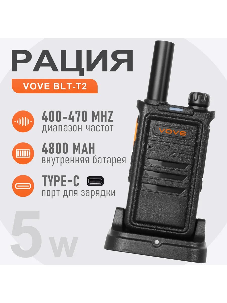 Портативная рация VOVE BLT-T2 UHF400-470MHz Type-C (5Вт) интересное: