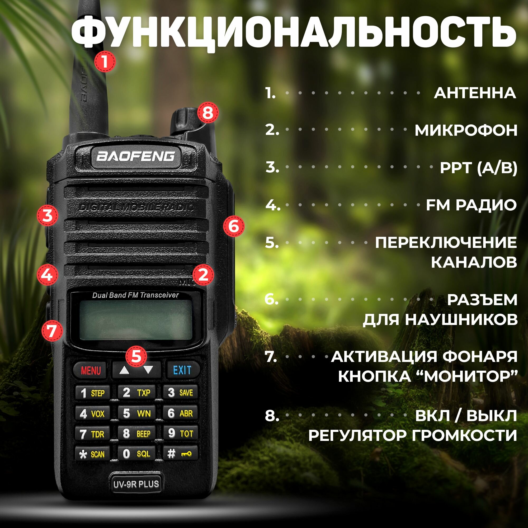 Комплект раций 2 шт. Baofeng UV-9R PLUS 8W + Гарнитура для охоты и рыбалки, для туризма, автомобильная, для стройки, страйкбола интересное: