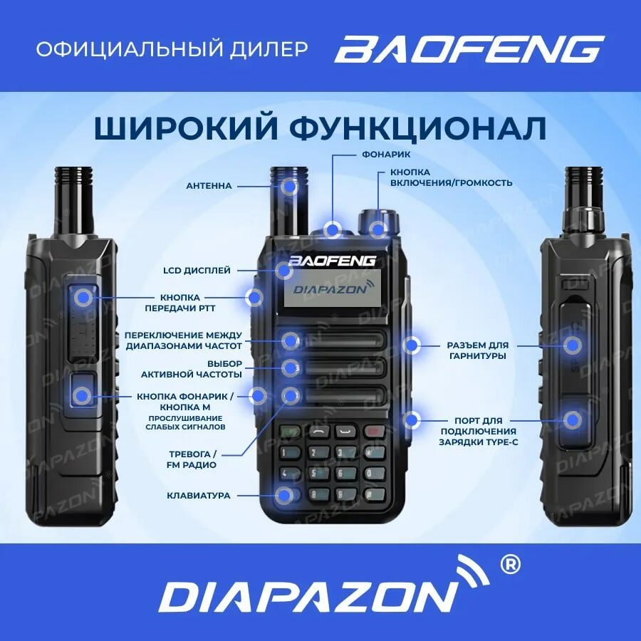Рация BAOFENG UV-16 PRO TRI BAND TYPE-C, 10 Ватт, с гарнитурой в комплекте, цвет черный интересное: