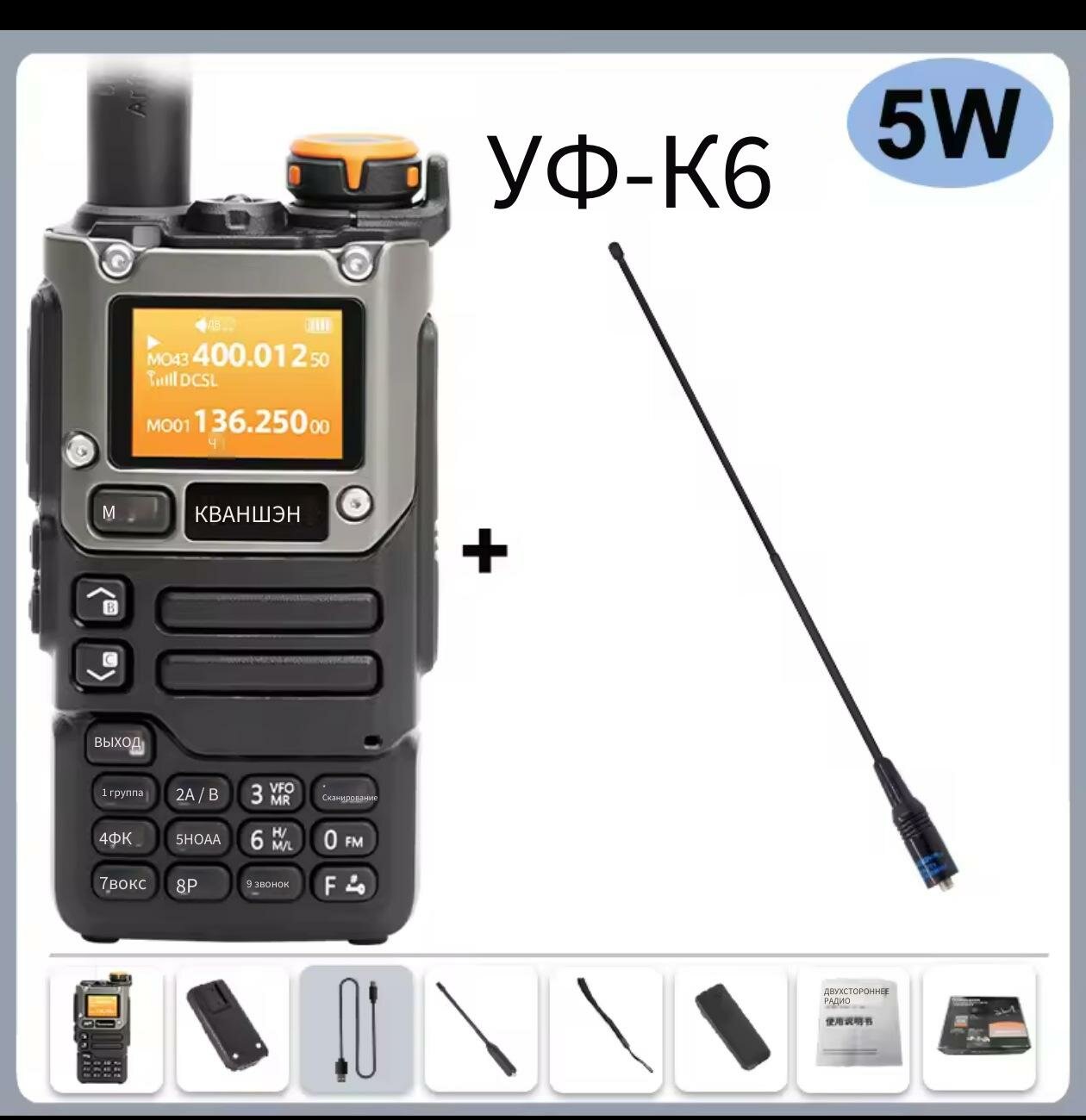 Рация UV-K6, поддержка нескольких авиационных частот, переключение мощностей, ударопрочный корпус, черная интересное: