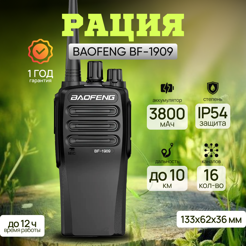 Радиостанция BAOFENG BF-1909 аналоговая, 5 Вт, 3800 мАч, IP54, 400-470 МГц, USB Type-C, до 10 км интересное: