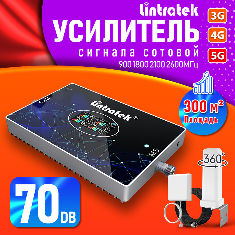 Усилитель сотовой связи Lintratek 4 диапазона 900-2600МГц AGC 10dBi Яги антенна 10м кабель 3G 4G 5G интересное:
