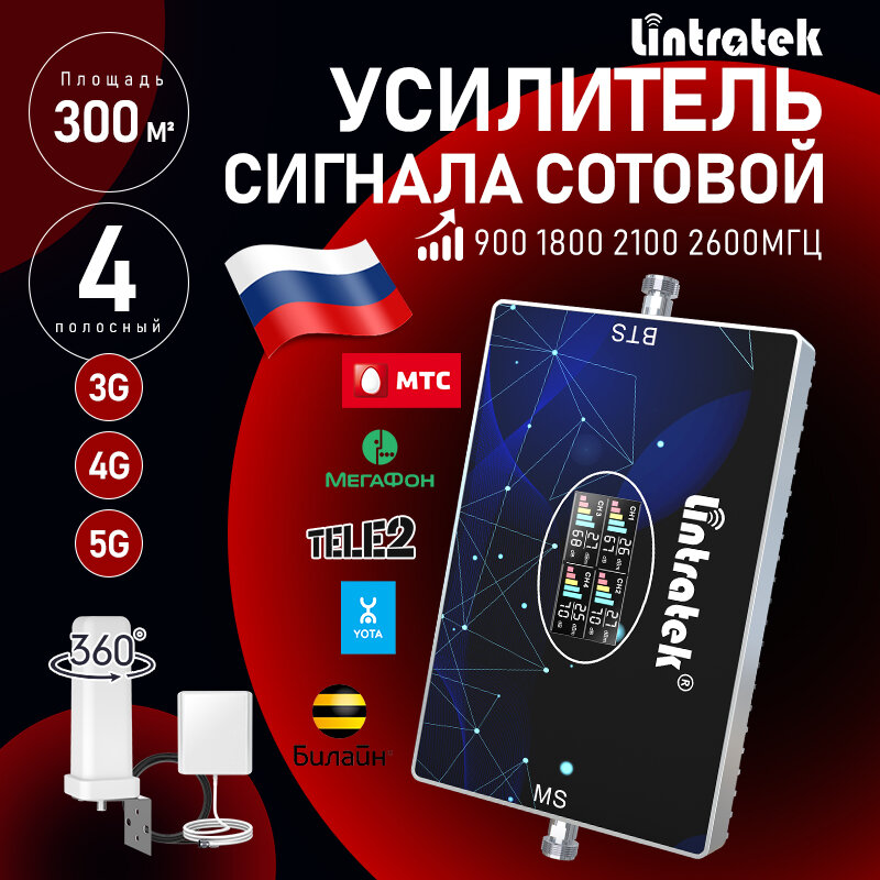 Репитер 4G Lintratek 900-2600МГц 10dBi направленная антенна комнатная антенна 10м кабель интересное: