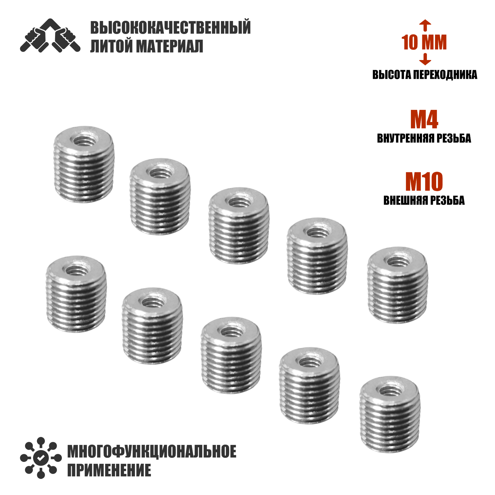 Резьбовая гайка переходник с внешней резьбой М10 и внутренней резьбой М4, высота 10 мм, 10 шт интересное: