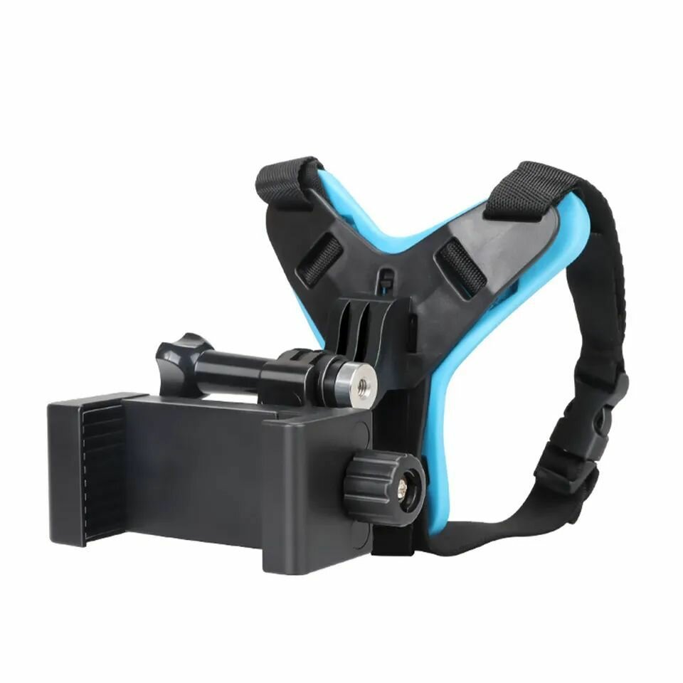Купить Крепление для экшн камеры на шлем с держателем для телефона / Крепление на подбородок синее