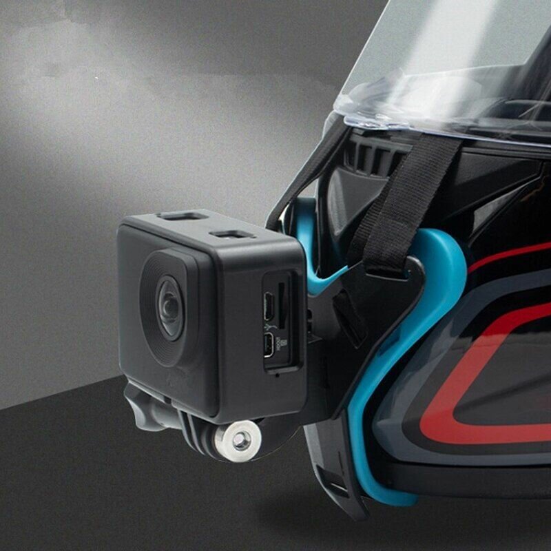 Крепление для экшн камеры на шлем с держателем для телефона / Крепление на подбородок синее интересное: