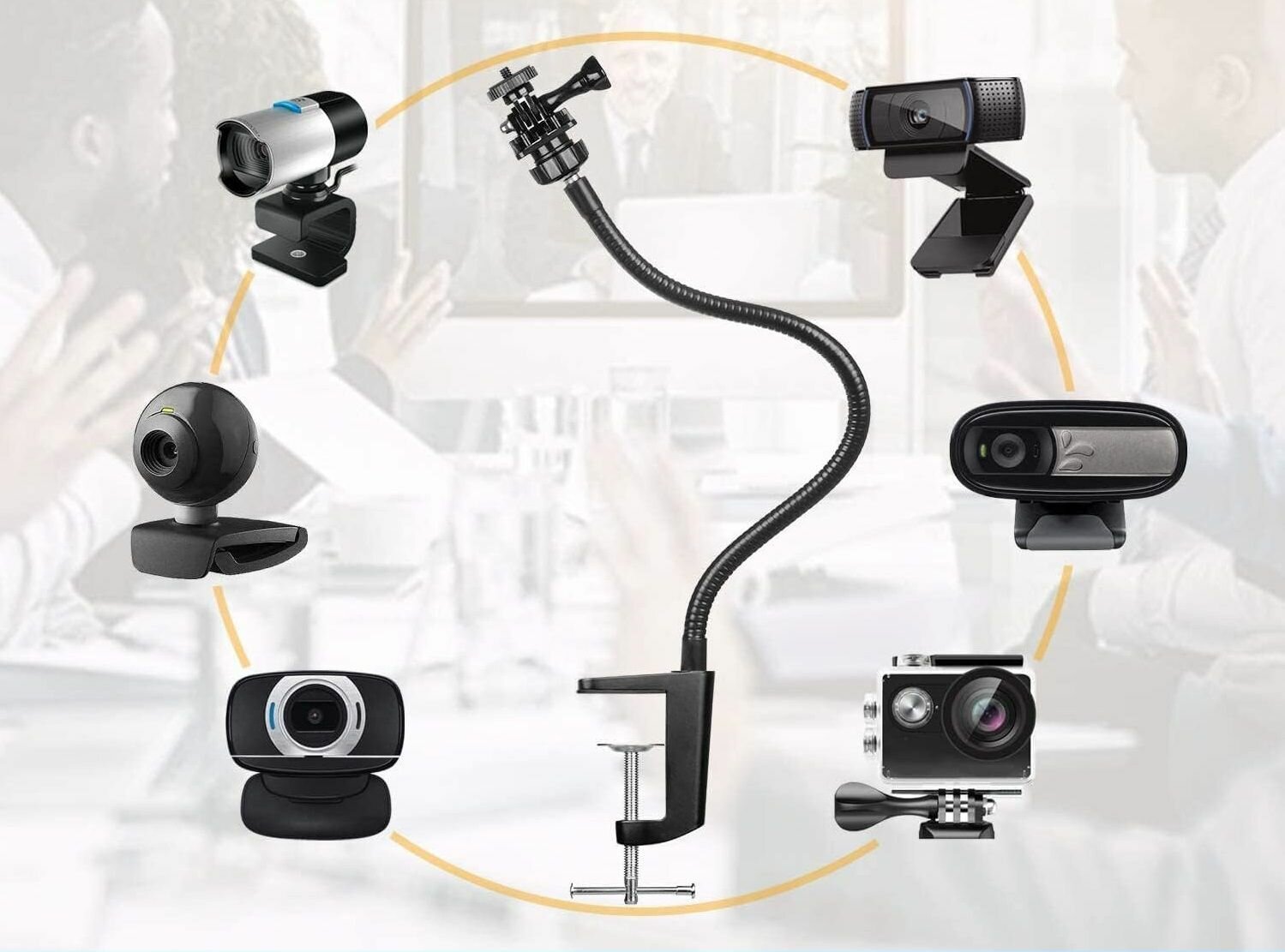Купить Гибкое крепление струбцина для экшн камеры, веб камеры, фотокамеры / Универсальный кронштейн гусиная шея