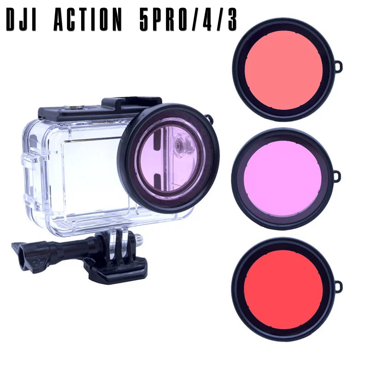 Купить Водонепроницаемый чехол для экшен камеры DJI Action5/4/3 pro, три фильтра (темно-красный, светло-красный, фиолетовый)