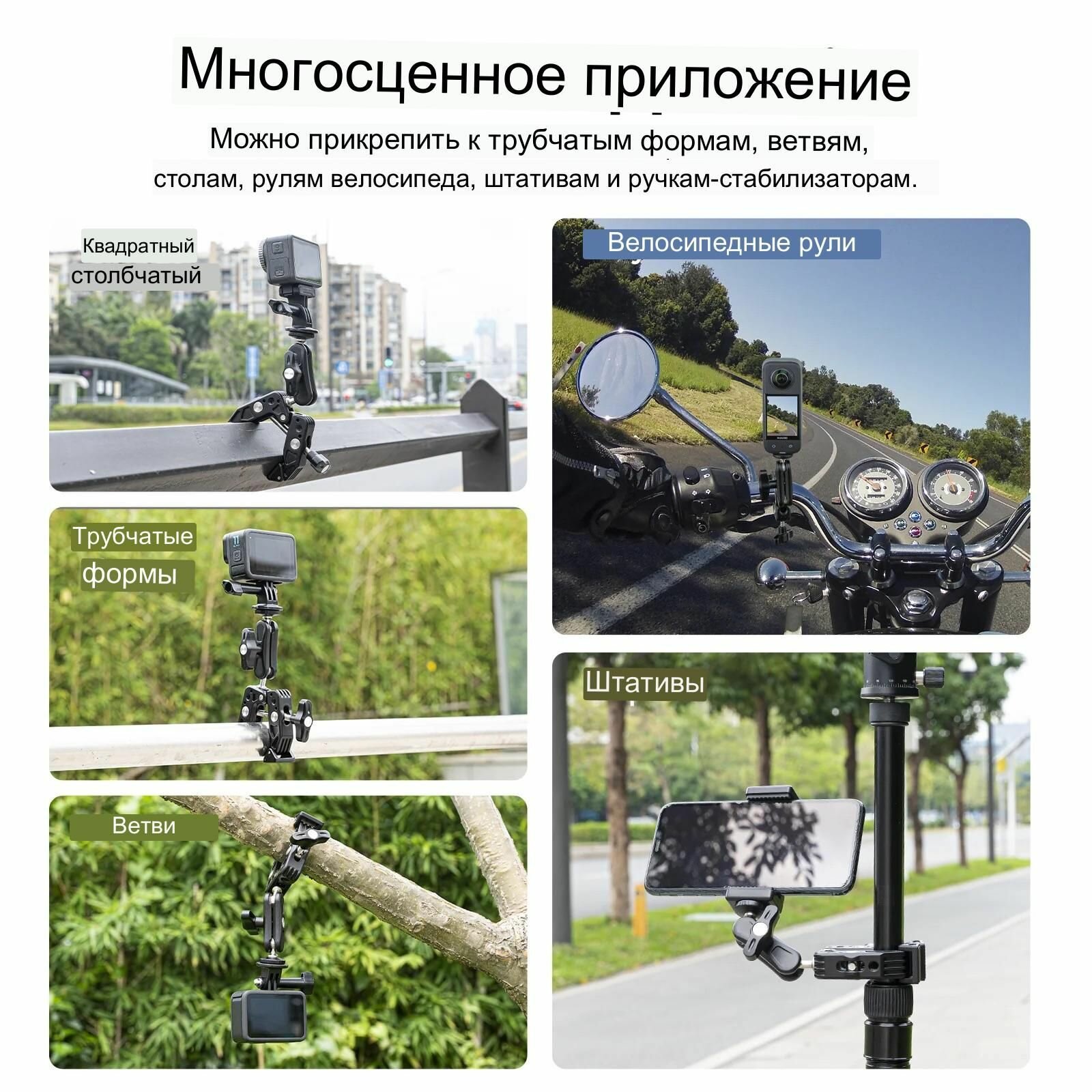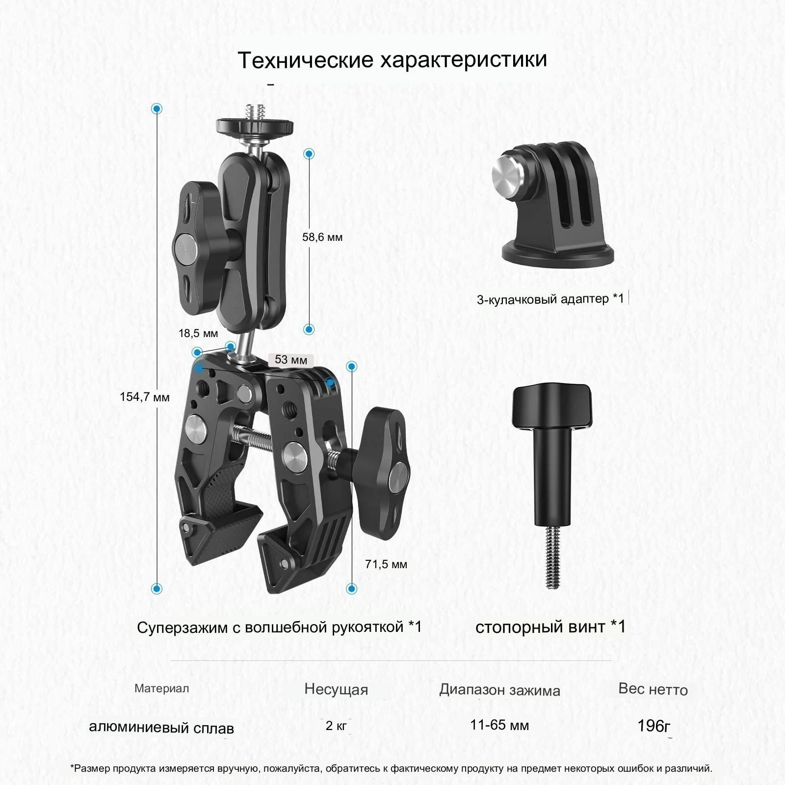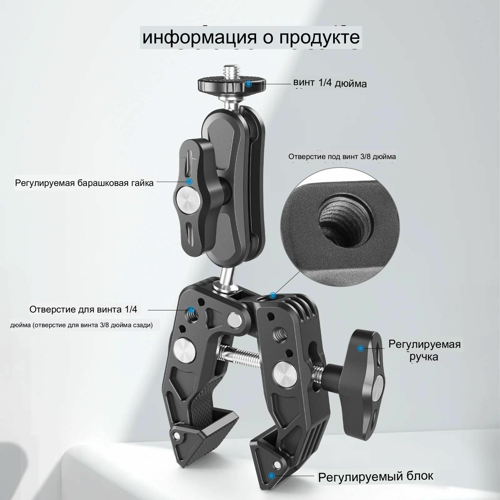 Многофункциональный мощный металлический зажим с шаровой головкой Telesin (SC-001) интересное: