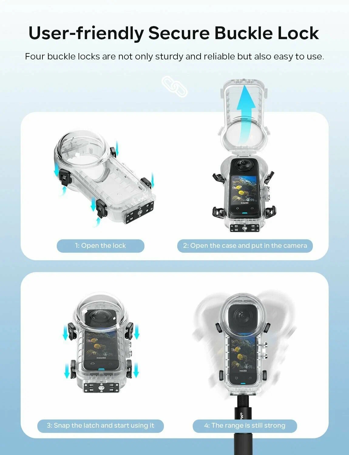 Insta360 X4 Dive Case полностью невидимый аквабокс для Insta360 X4 защищает камеру под водой на глубине до 50 метров интересное: