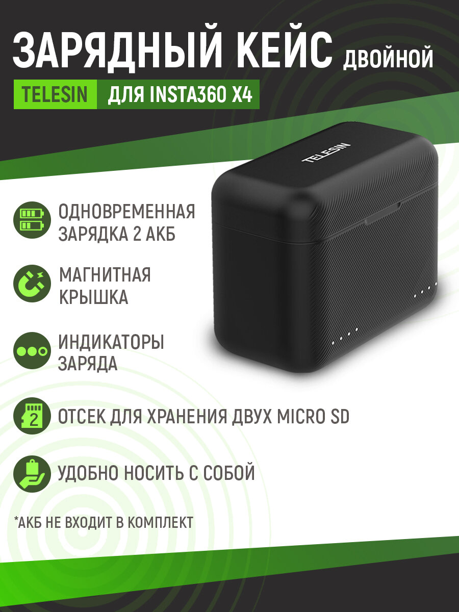 Зарядный кейс двойной Insta360 X4 Telesin, с быстрой зарядкой, S0-BCG-07-TIS интересное:
