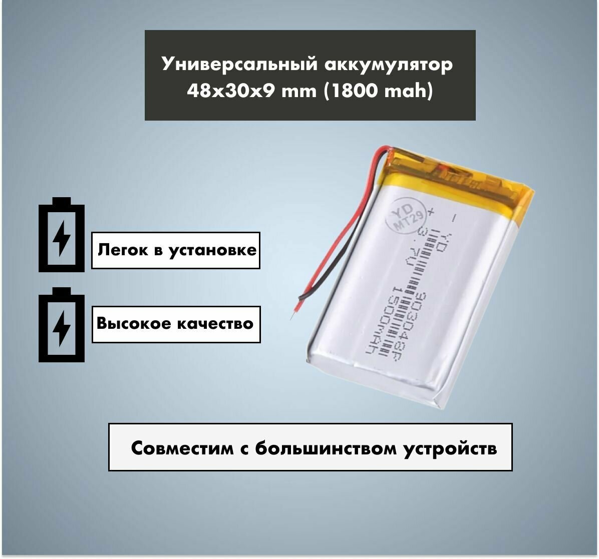 Купить Аккумулятор универсальный 903048p 3,7v Li-Pol 1800 mAh (9*30*48 mm)