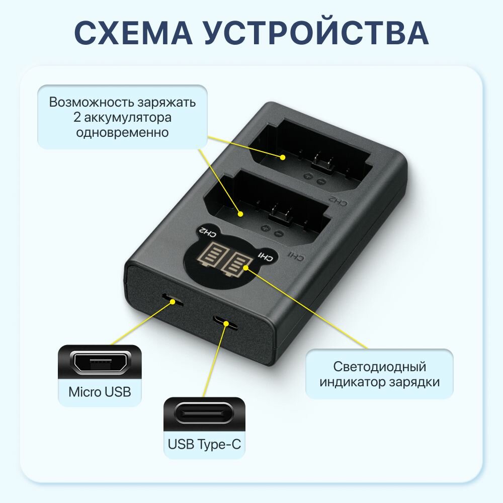 Двойное зарядное устройство для аккумулятора цифровых камер Sony NP-FZ100 / Alpha a6700 (Dual Charger) с индикатором заряда, разъем USB Type-C, микро USB интересное: