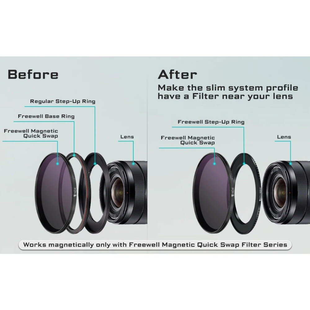 Freewell Step Up Ring С Магнитной Системой Быстрой Замены Freewell, А Также С Вашим Резьбовым Фильтром 52-67mm