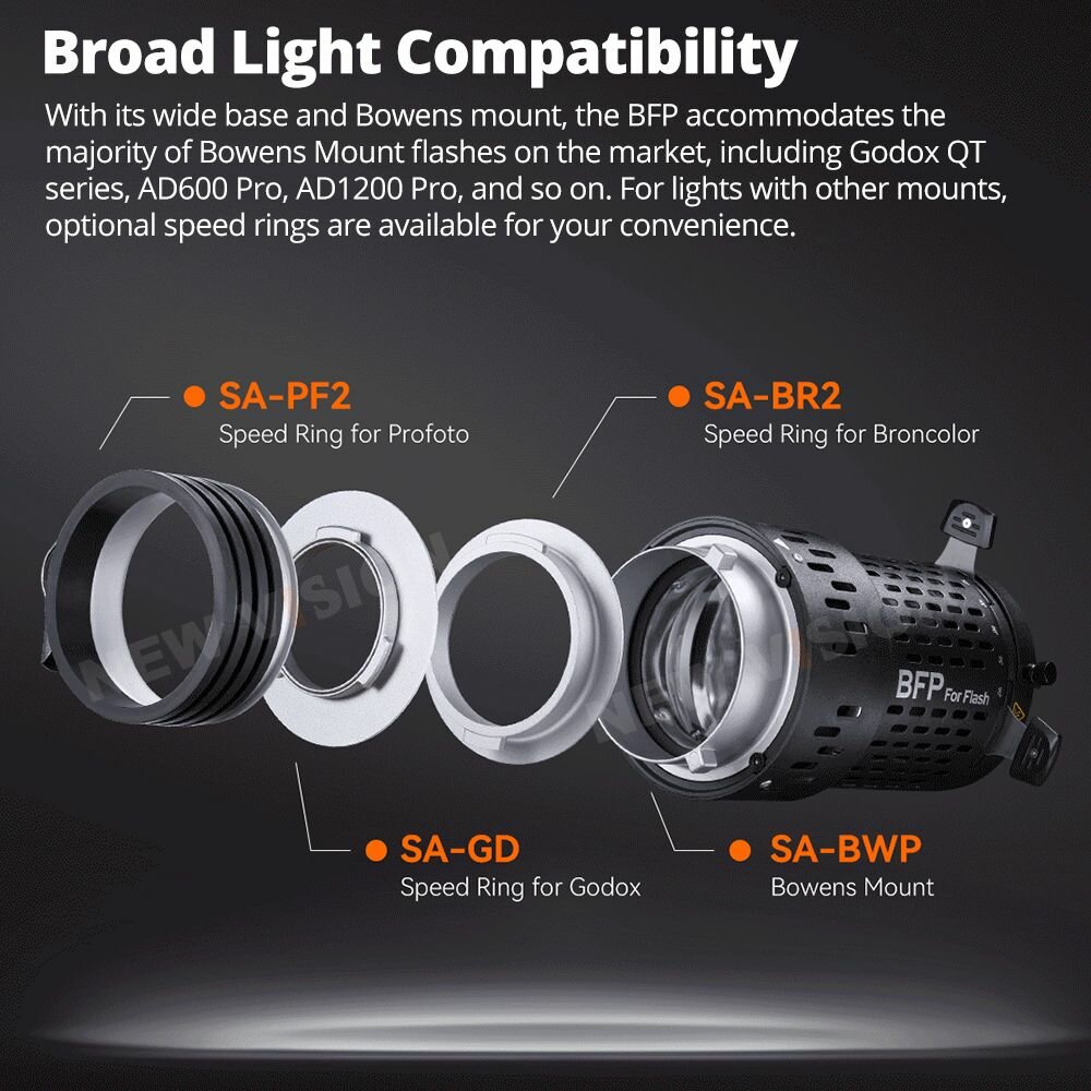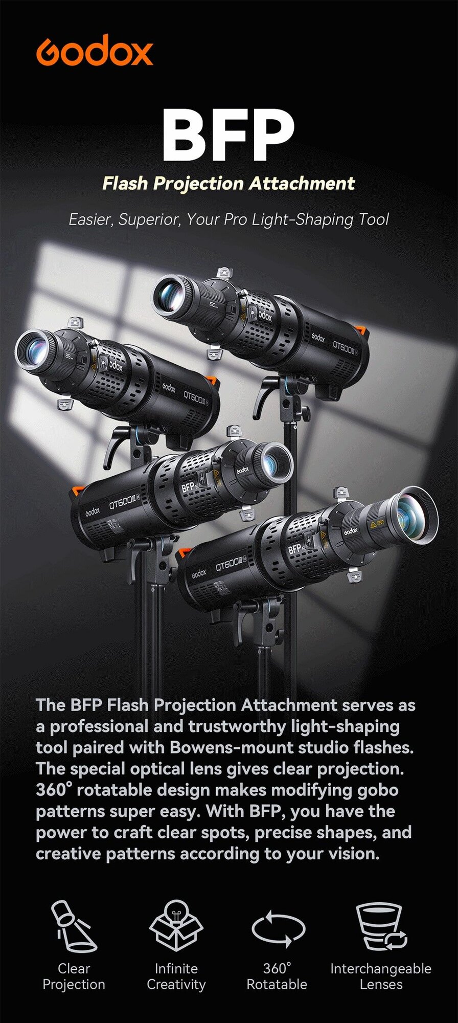 Godox BFP Flash Проекционный конденсатор Bowens Mount Beam Световой цилиндр интересное: