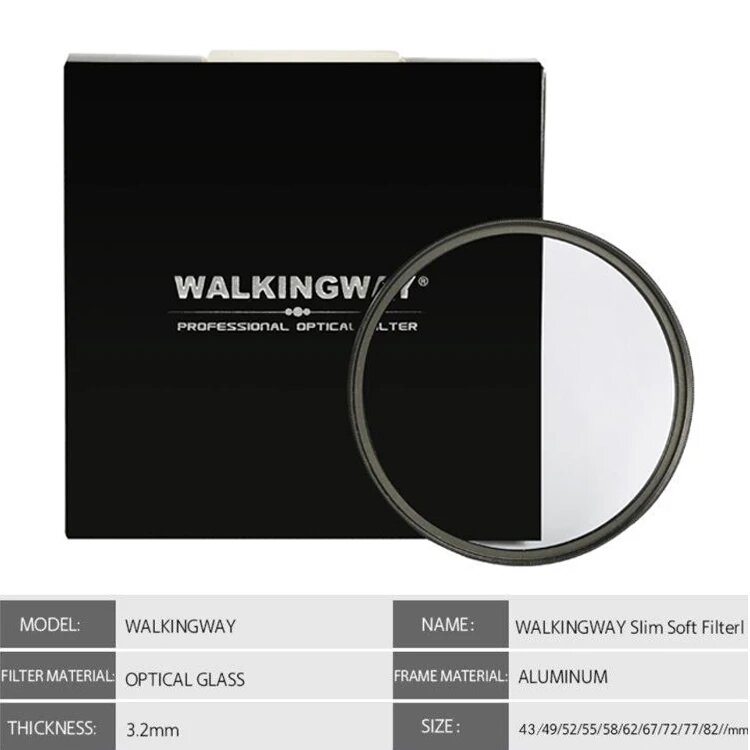 Ниже Вы можете прочитать отзывы на Walking Way Про Мист Фильтр для камеры, Soft Filter 2, 52 мм, ознакомится с подробными характеристиками, посмотреть интересные обзоры и фотографии на Walking Way Про Мист Фильтр для камеры, Soft Filter 2, 52 мм.
