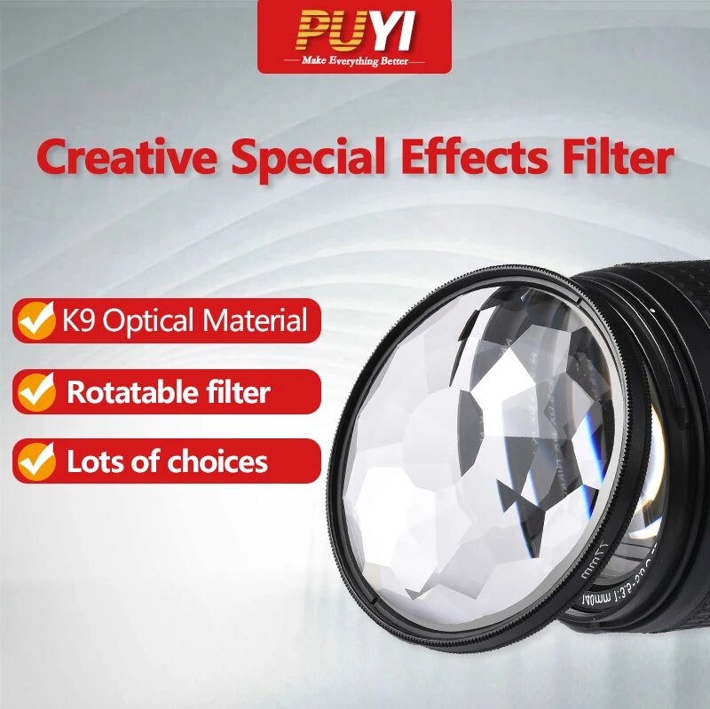 Купить Фильтр PUYI 55/58/62/67/72/77/82 мм для камеры Canon Nikon, Three-Edge Prism, With 67 adapter ring