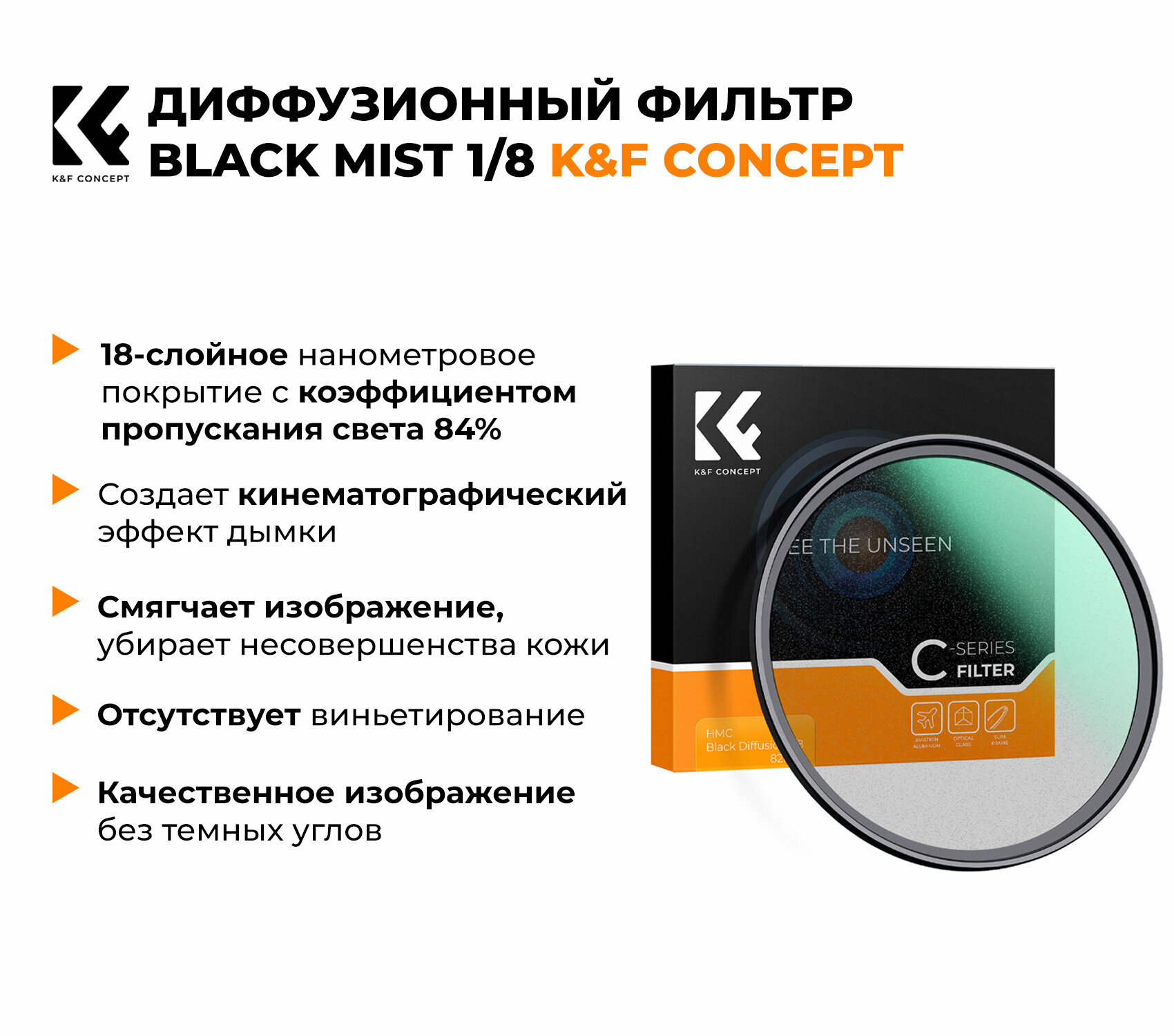 Светофильтр K&F Concept C-Series Black Mist 1/8 49mm интересное: