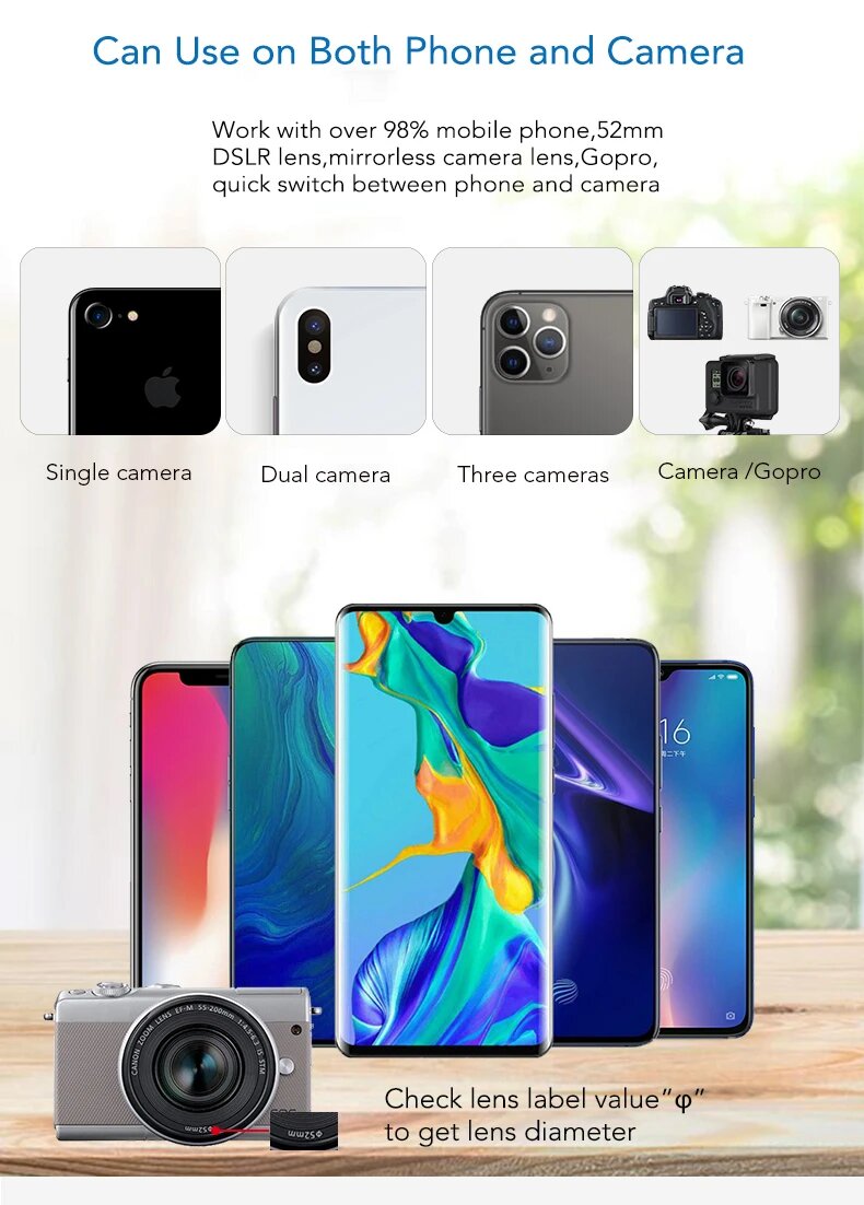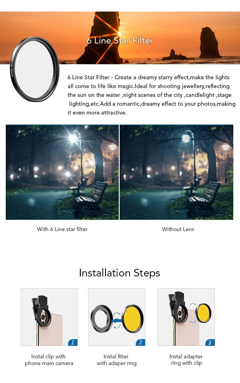 APEXEL 7 в 1 набор фильтров для камеры 37/52мм, 7 in 1 kit, 52 мм интересное: