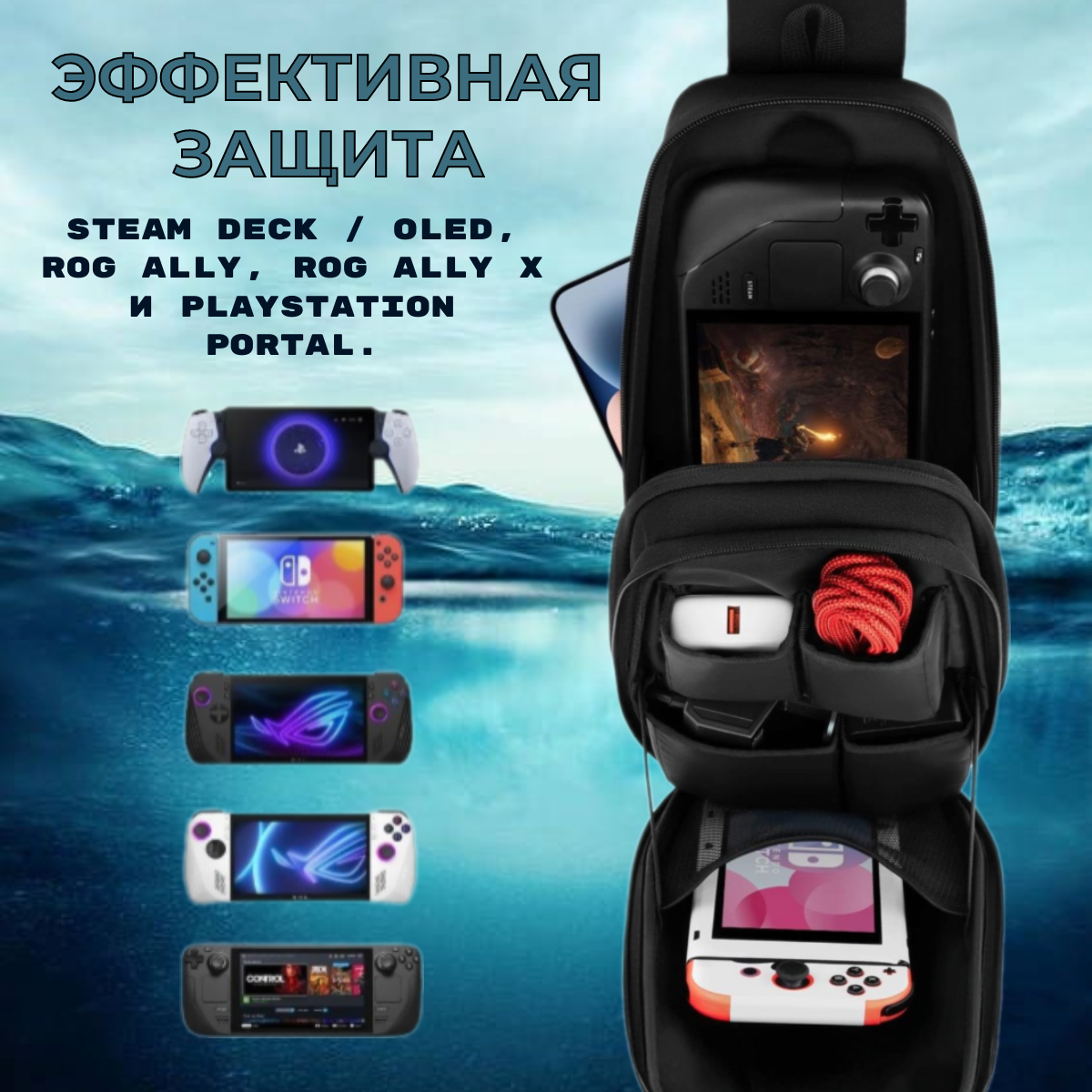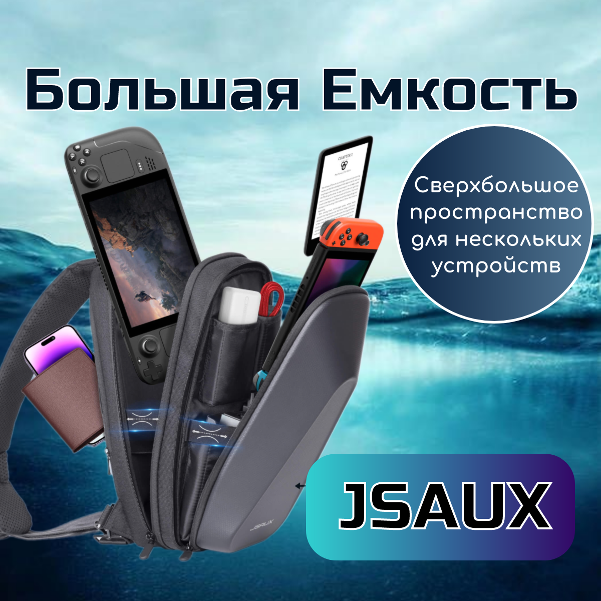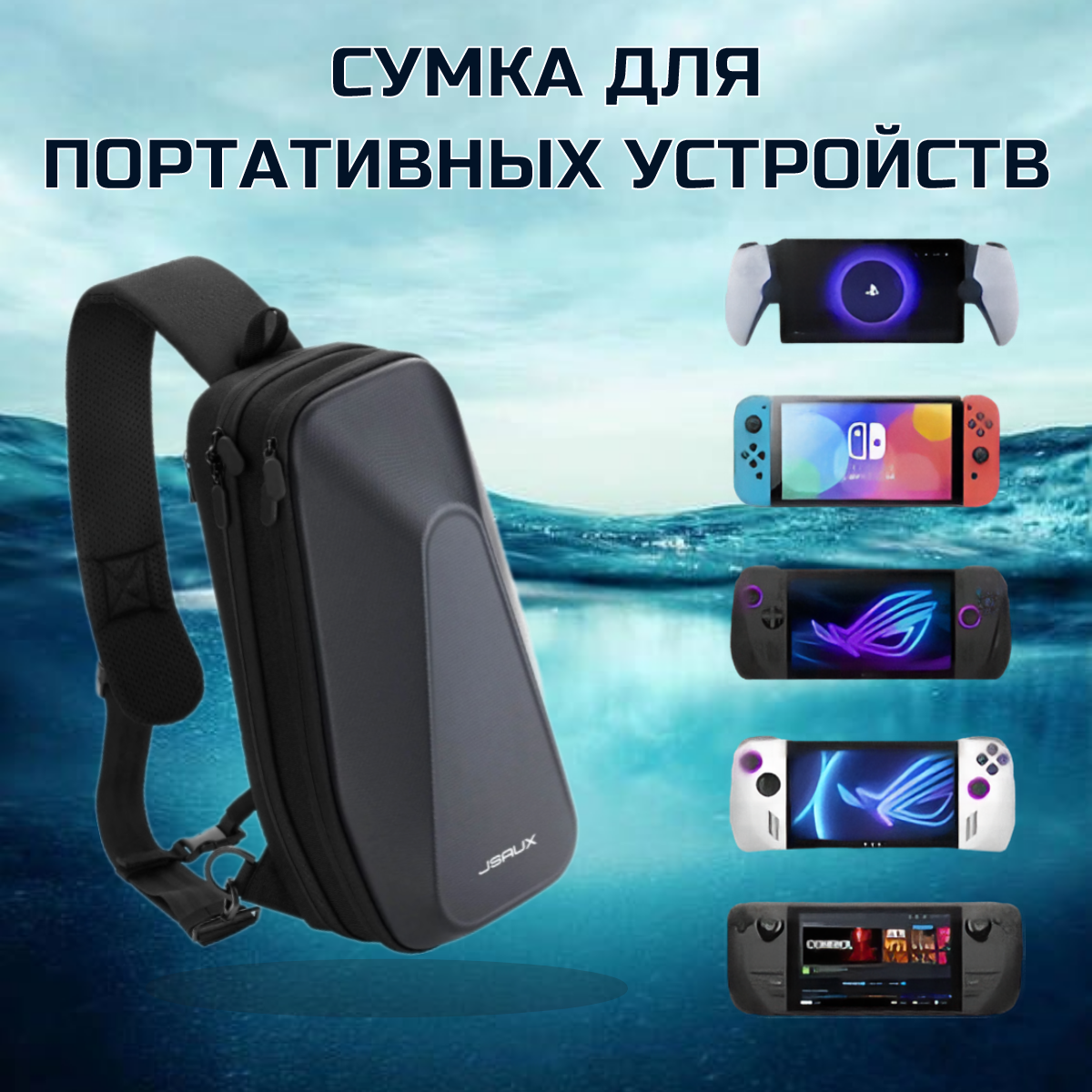 Купить Сумка jsaux для консоли Steam Deck и аксессуаров, защитный рюкзак из жесткой оболочки для ROG ALLY и Nintendo Switch BG0105X, черный