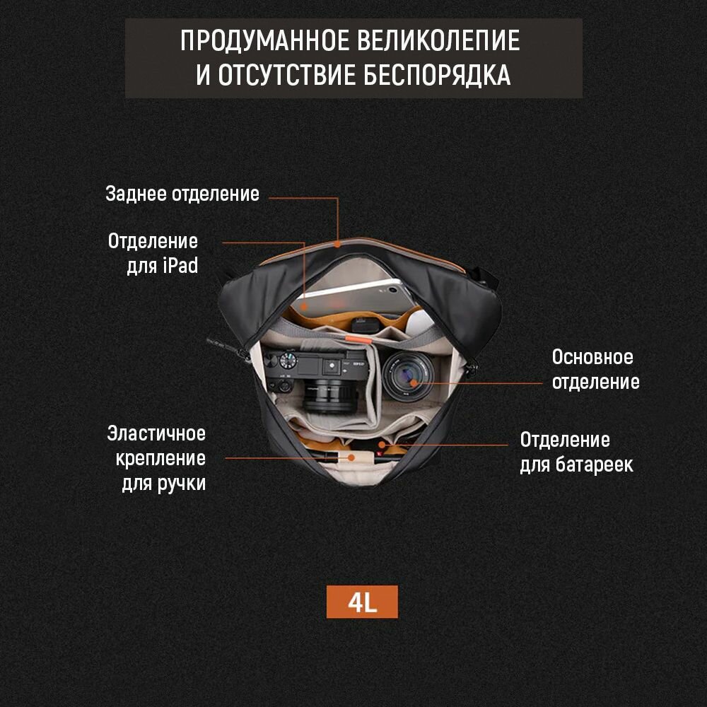 Сумка для фотоаппарата PGYtech OneGo Solo V2 мужская женская через плечо (4L, Obsidian), органайзер для фото и видеооборудования, P-CB-150 интересное: