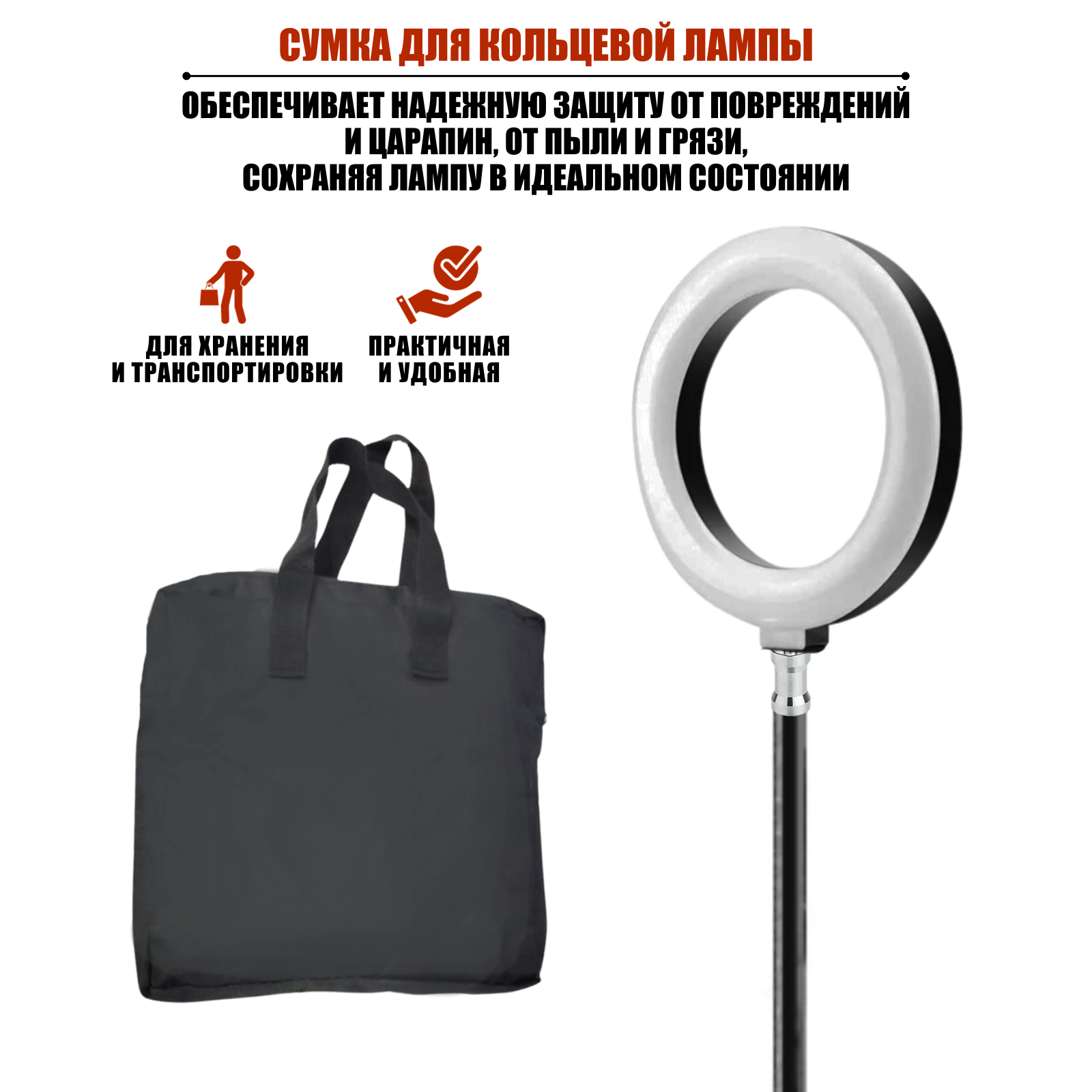 Сумки для фотографа для кольцевой лампы, размер 47x47x7,5 см, и штатива до 71 см интересное: