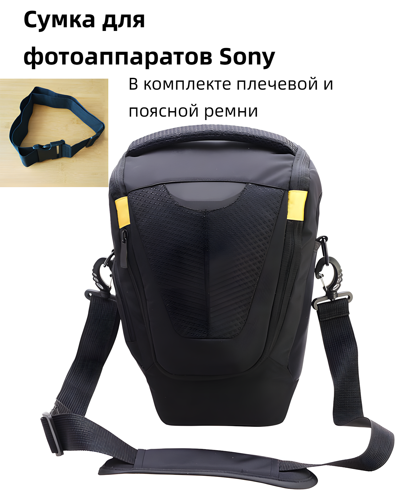 СохранитьСумка для фотоаппаратов Sony с объективом GM 70-200mm, с плечевым и поясным ремнями, черный/желтый интересное: