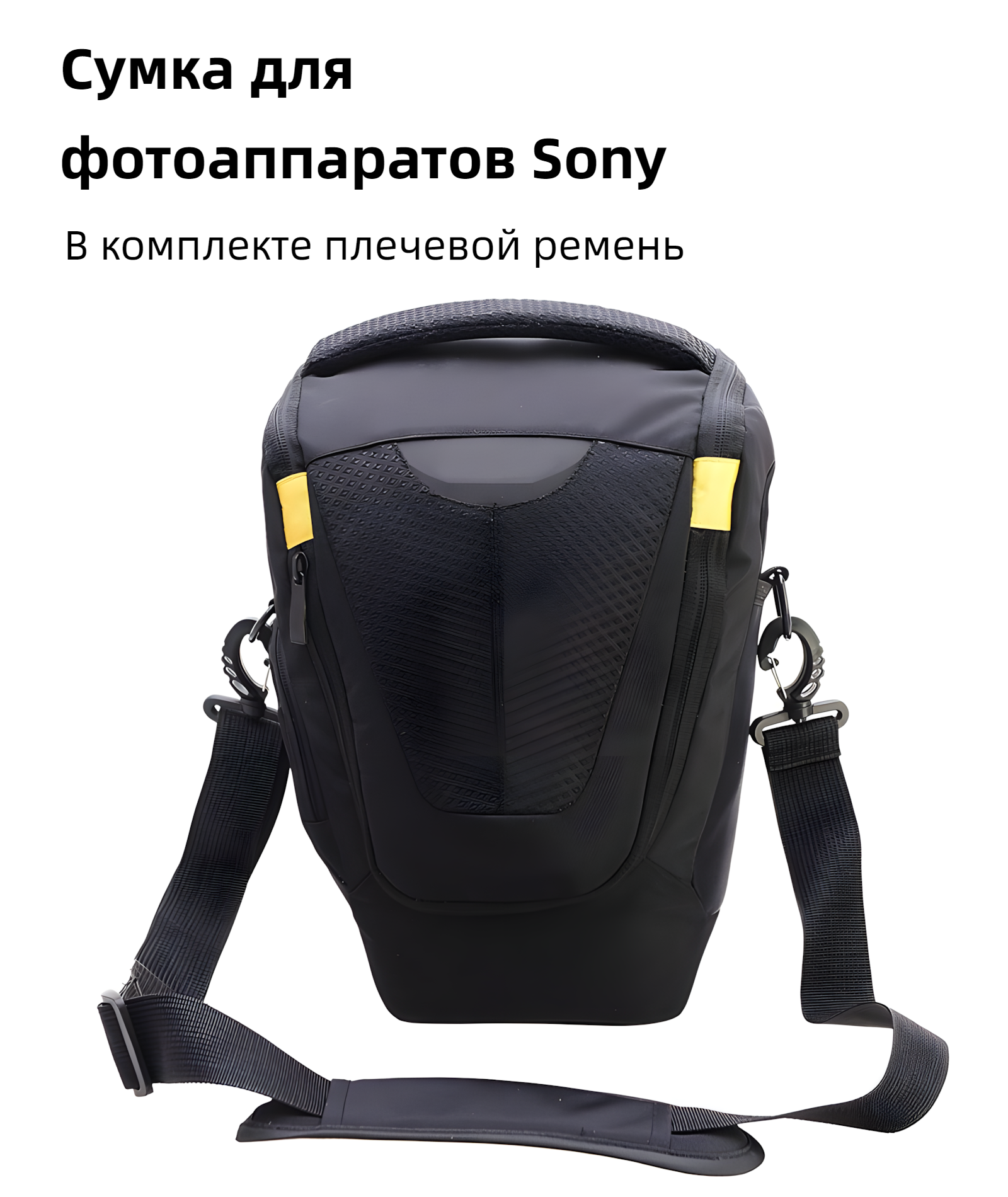 Сумка для фотоаппаратов Sony с объективом GM 70-200mm, с плечевым и поясным ремнями, черный/желтый