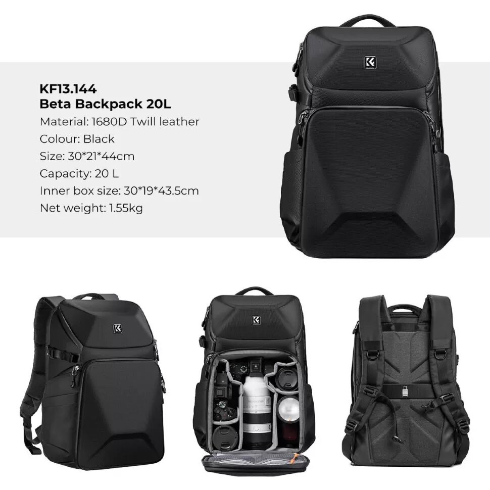 Фоторюкзак с жесткой крышкой K&F Concept KF13.144, черный интересное: