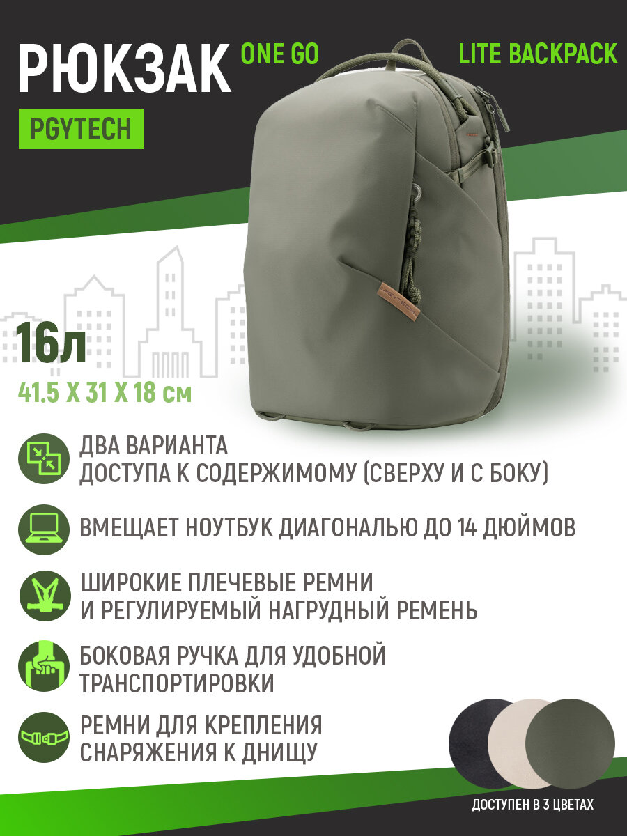 Рюкзак PGYtech OneGo Lite Backpack 16L (зеленый), P-CB-353 интересное: