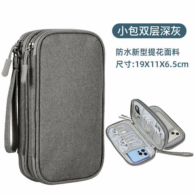 Сумка для хранения, для цифровых аксессуаров, двухслойная, темно-серая, 19x11x6.5 см