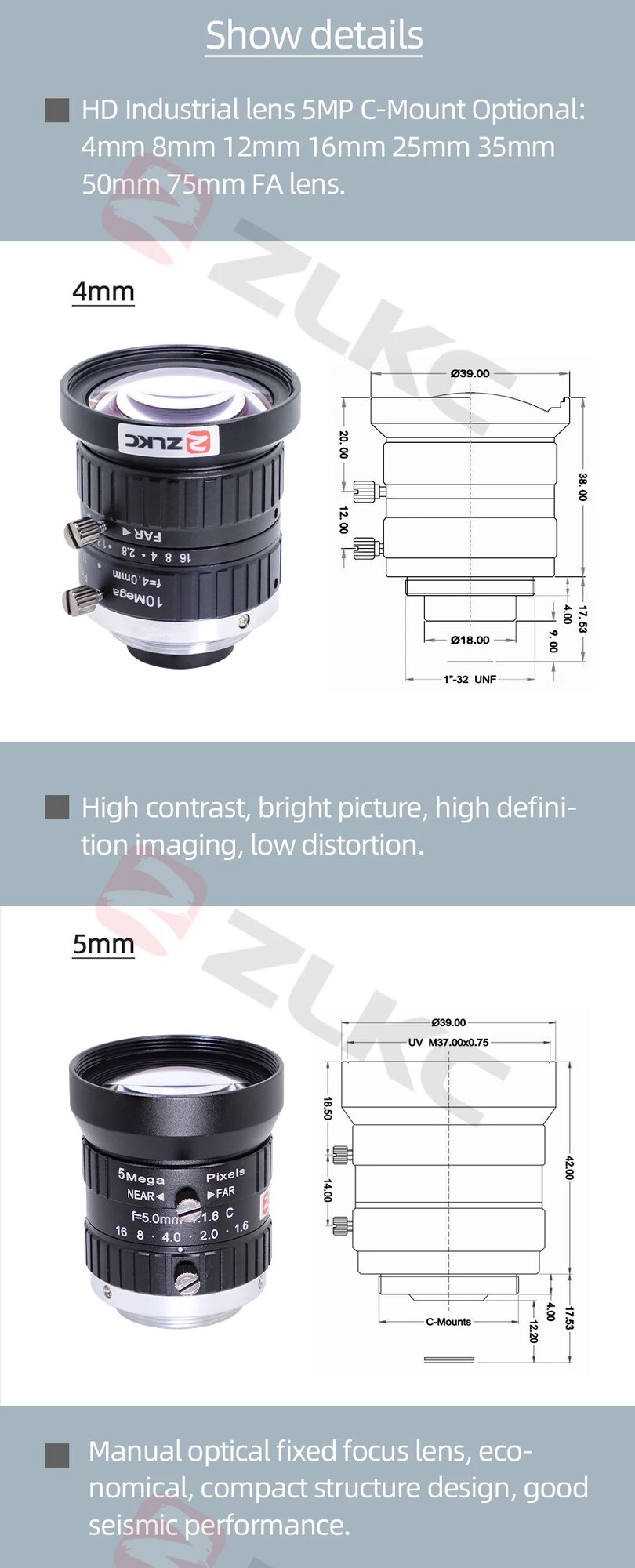 Объективы ZLKC для промышленных камер 5Мп 5-75мм, 4mm VM0418MPC, С Рот интересное: