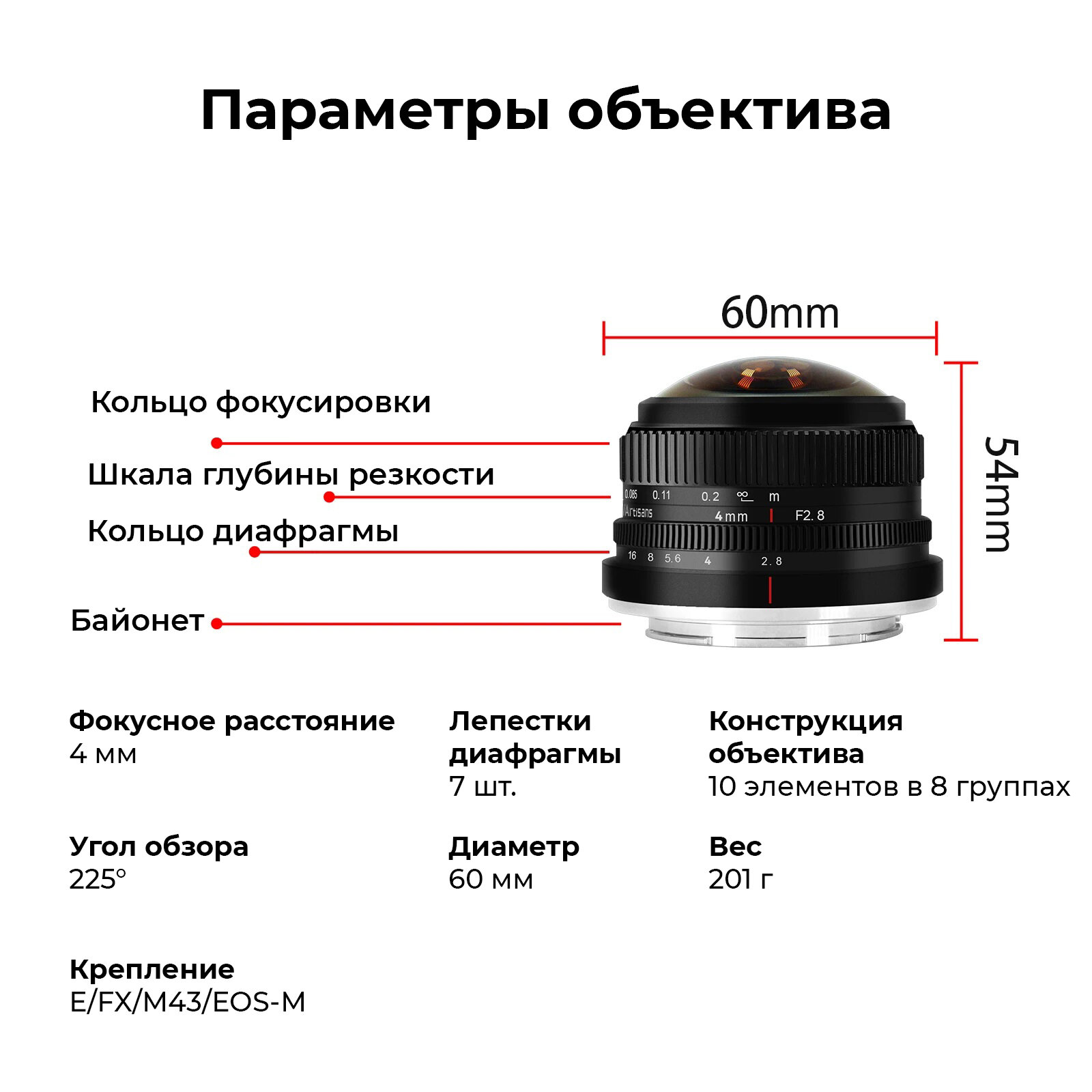 Объектив 7Artisans 4mm f/2.8 X-Mount интересное: