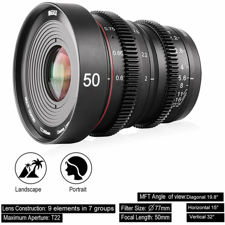 Объектив Meike 50mm T2.2 Micro 4/3 MK-5022T-MFT интересное: