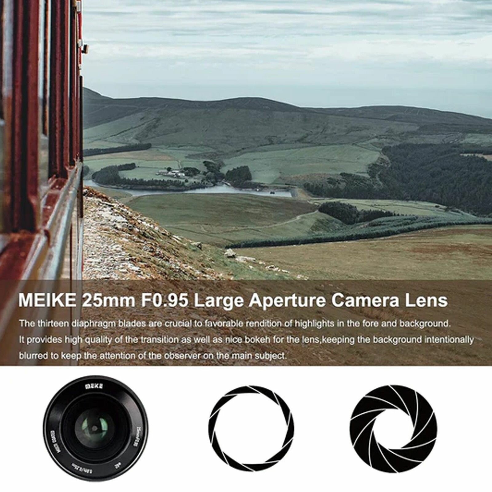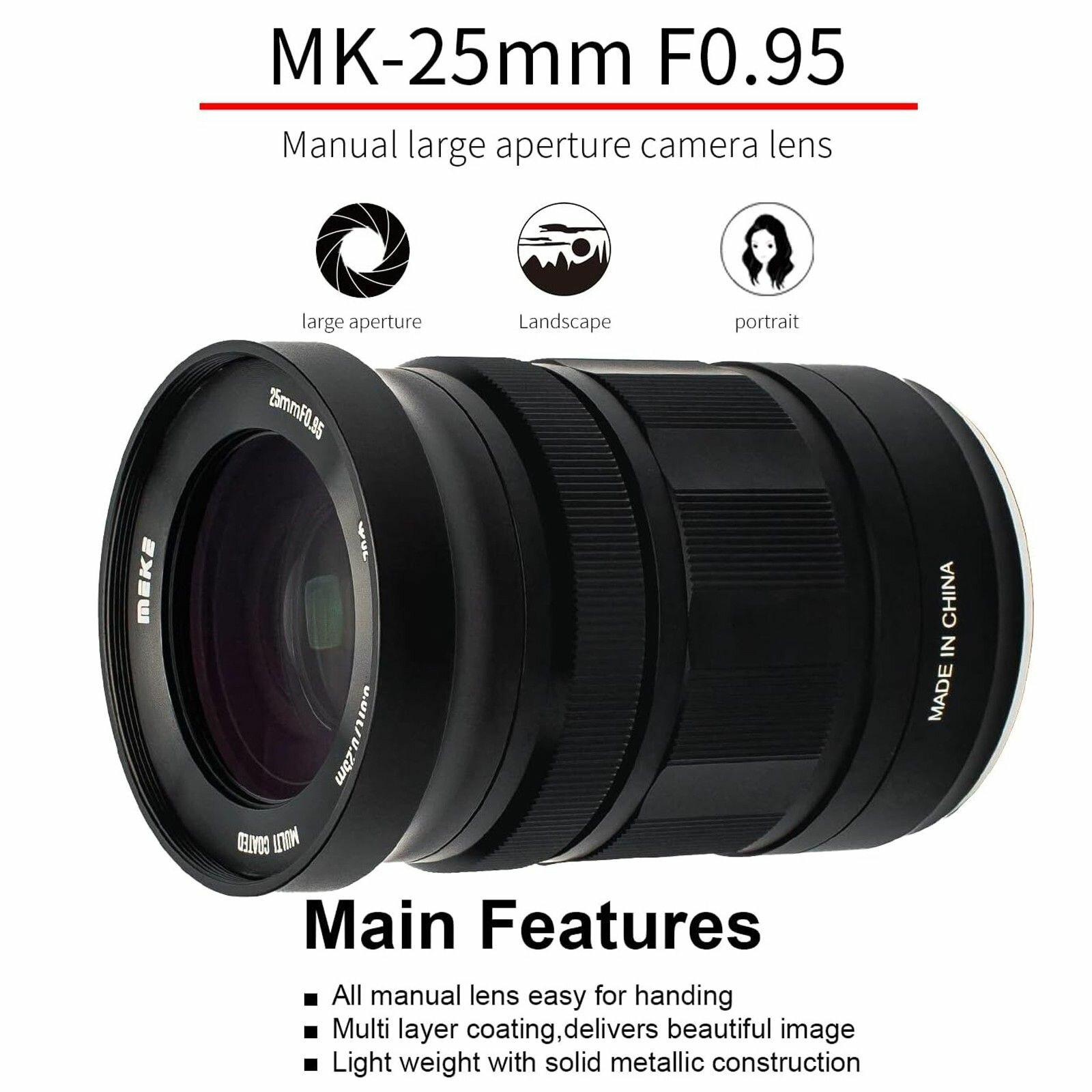 Купить Объектив Meike 25 мм f0,95 с и ручной фокусировкой, совместимый с беззеркальными камерами Panasonic Lumix M43
