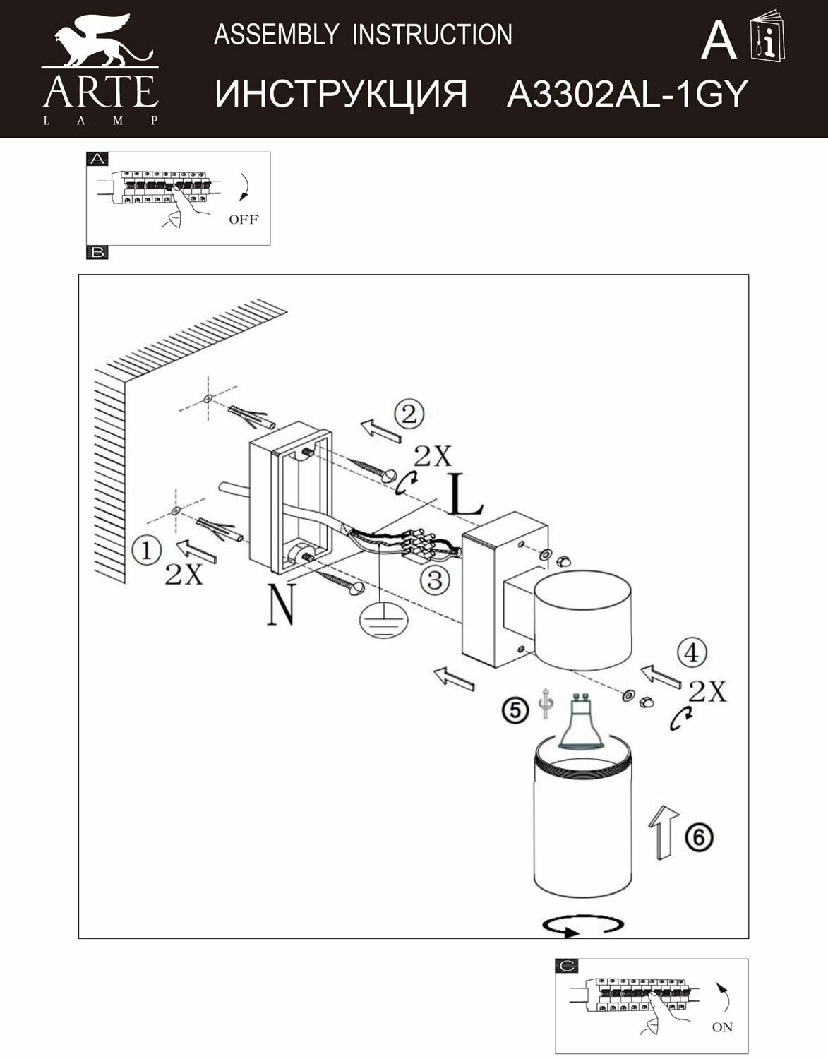 ARTE LAMP Светильник настенный Arte Lamp A3302AL-1GY