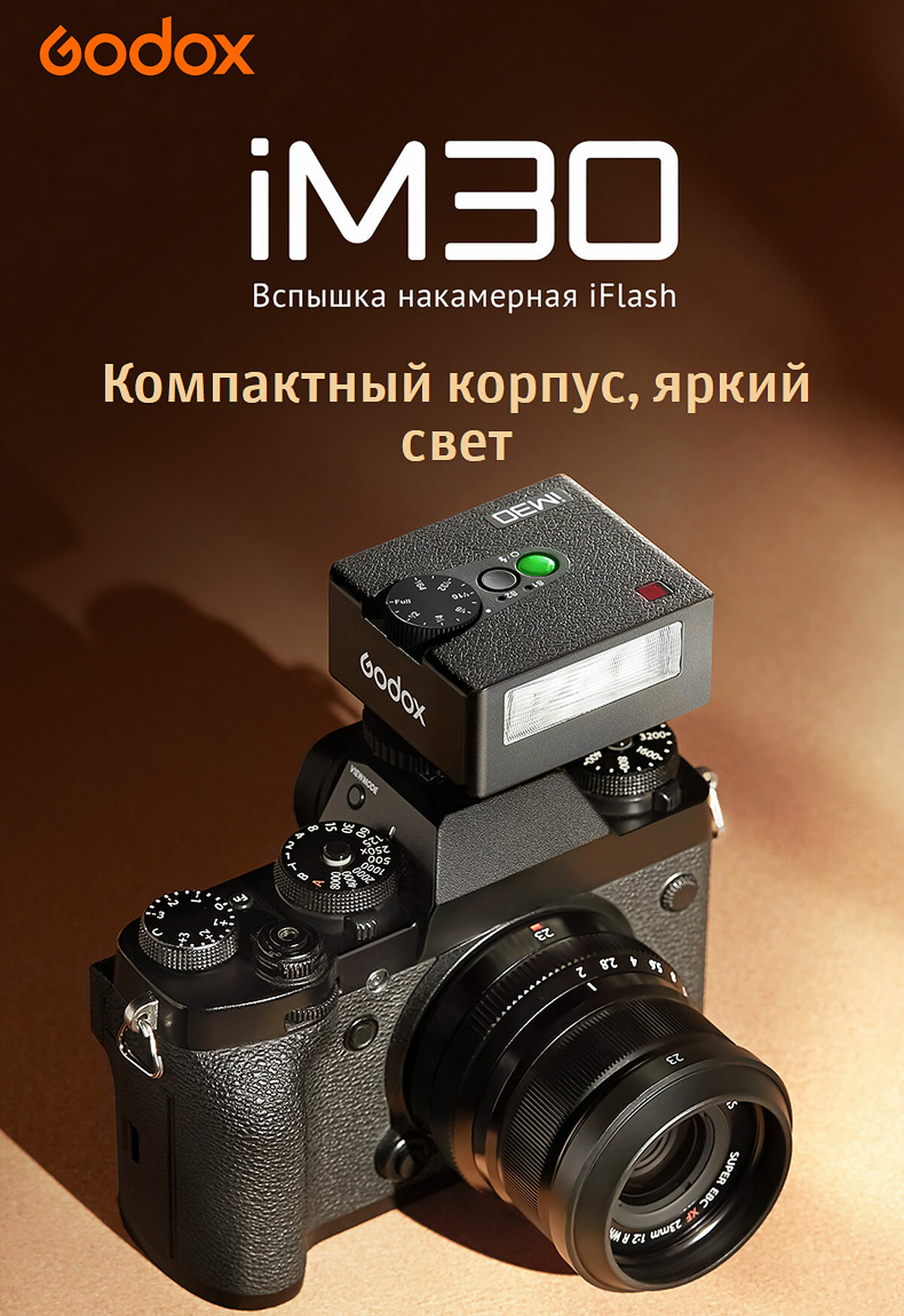 Вспышка накамерная Godox iM30 Mini Flash, башмак, питание от 2xAAA интересное: