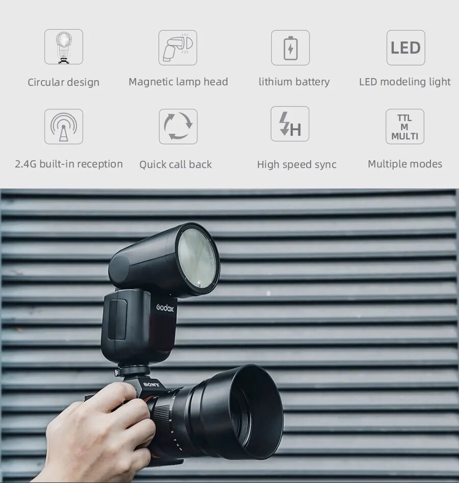 Ниже Вы можете прочитать отзывы на Godox V1 TTL вспышка для Canon, V1 Only, for Canon, ознакомится с подробными характеристиками, посмотреть интересные обзоры и фотографии на Godox V1 TTL вспышка для Canon, V1 Only, for Canon.