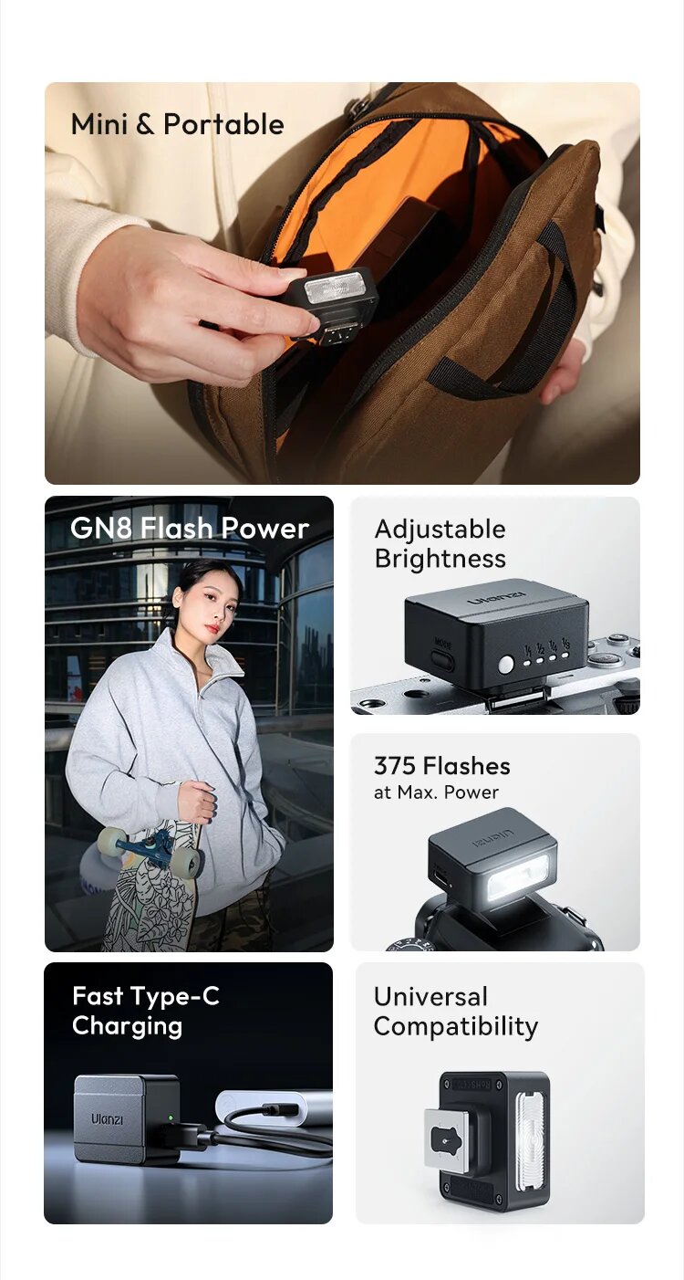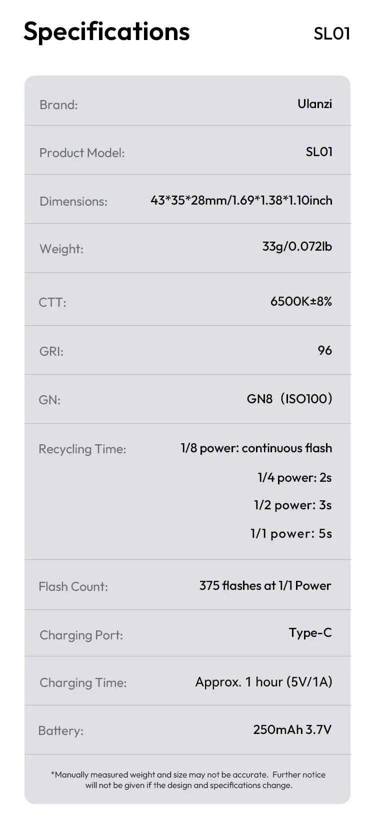 Ulanzi SL01 Вспышка для фотосъемки GN8 6500K, LS02 Flash интересное:
