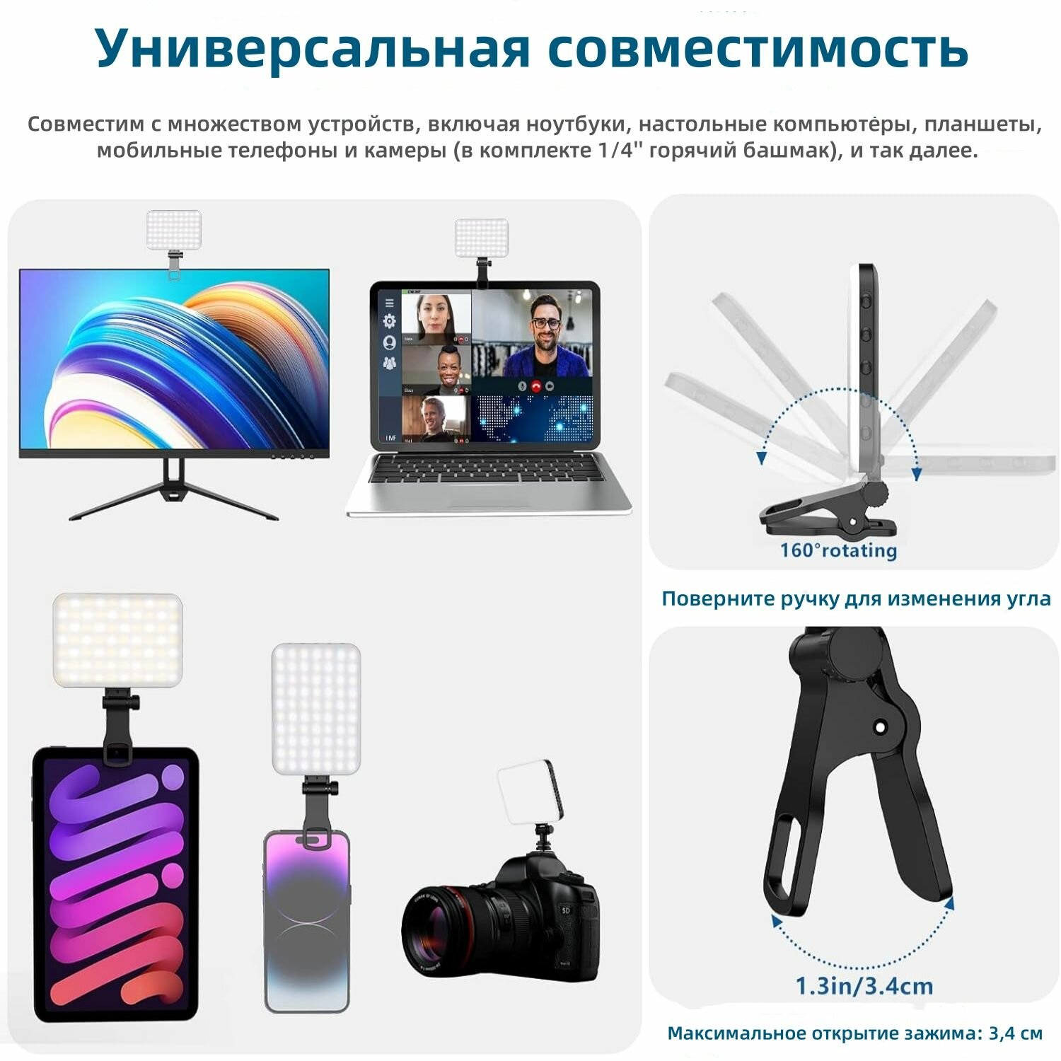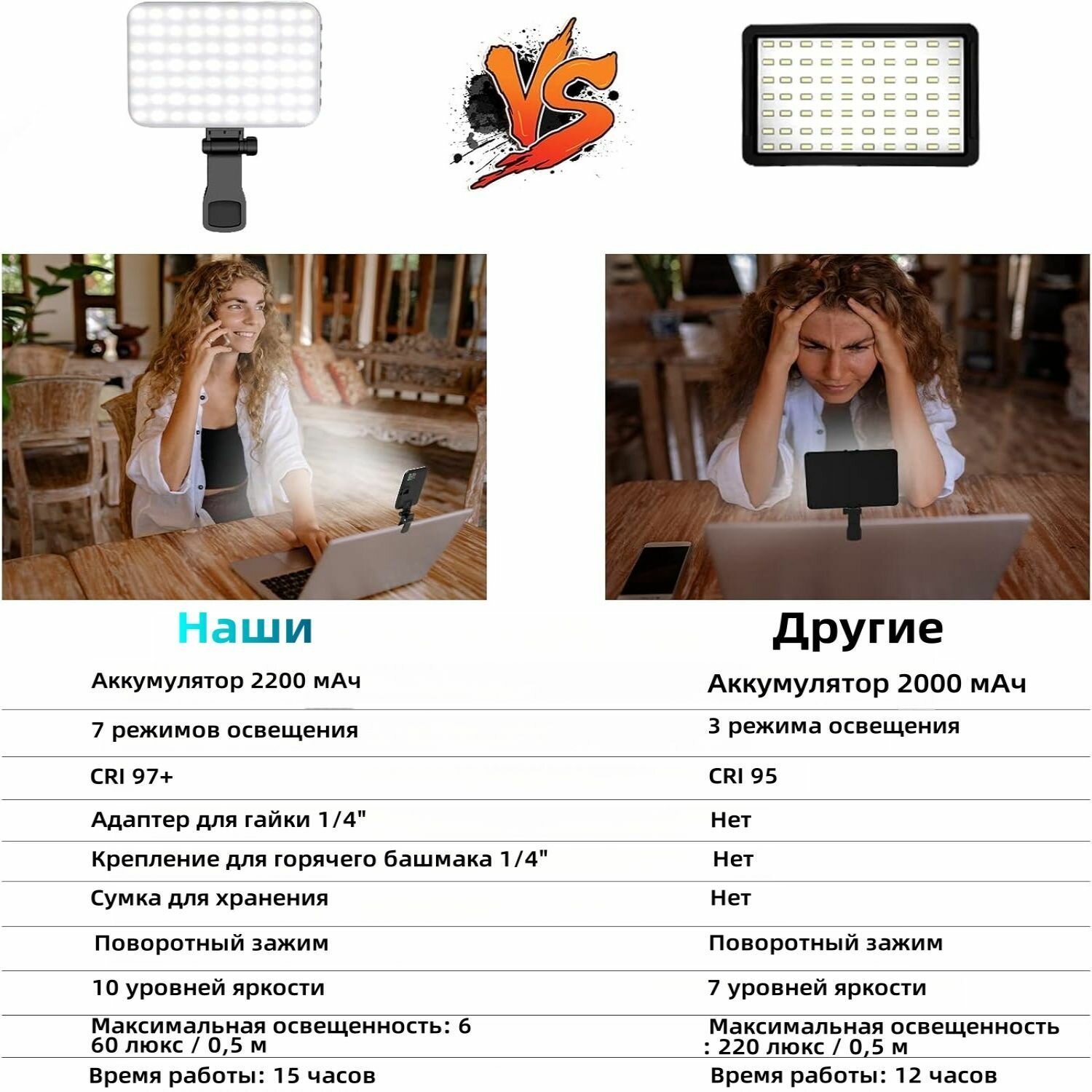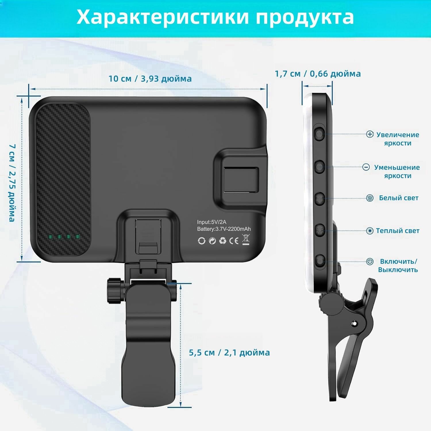 Светодиодная лампа, для мобильной съёмки, CRI 97+, 10 уровней, 3 цвета, 10 Вт интересное: