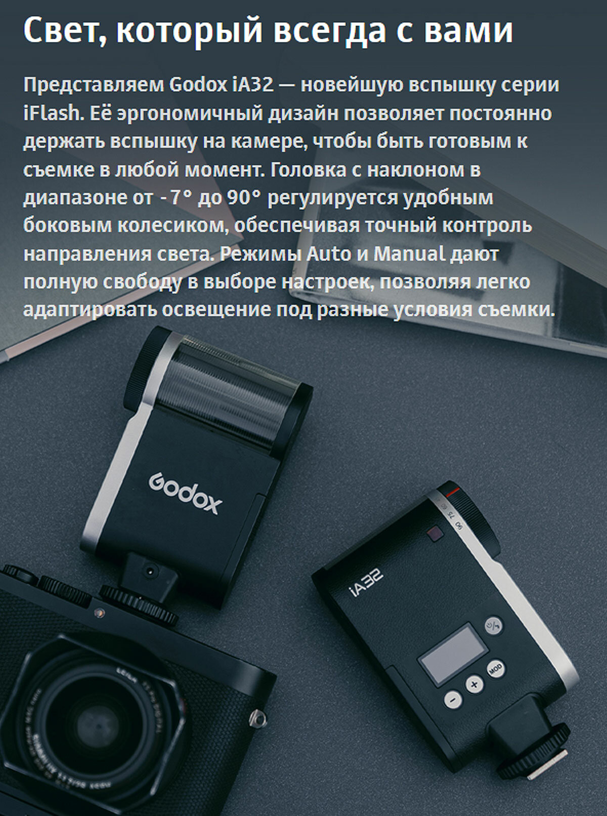 Вспышка Godox iFlash iA32, 8уровней мощности, питание от 2xAA интересное: