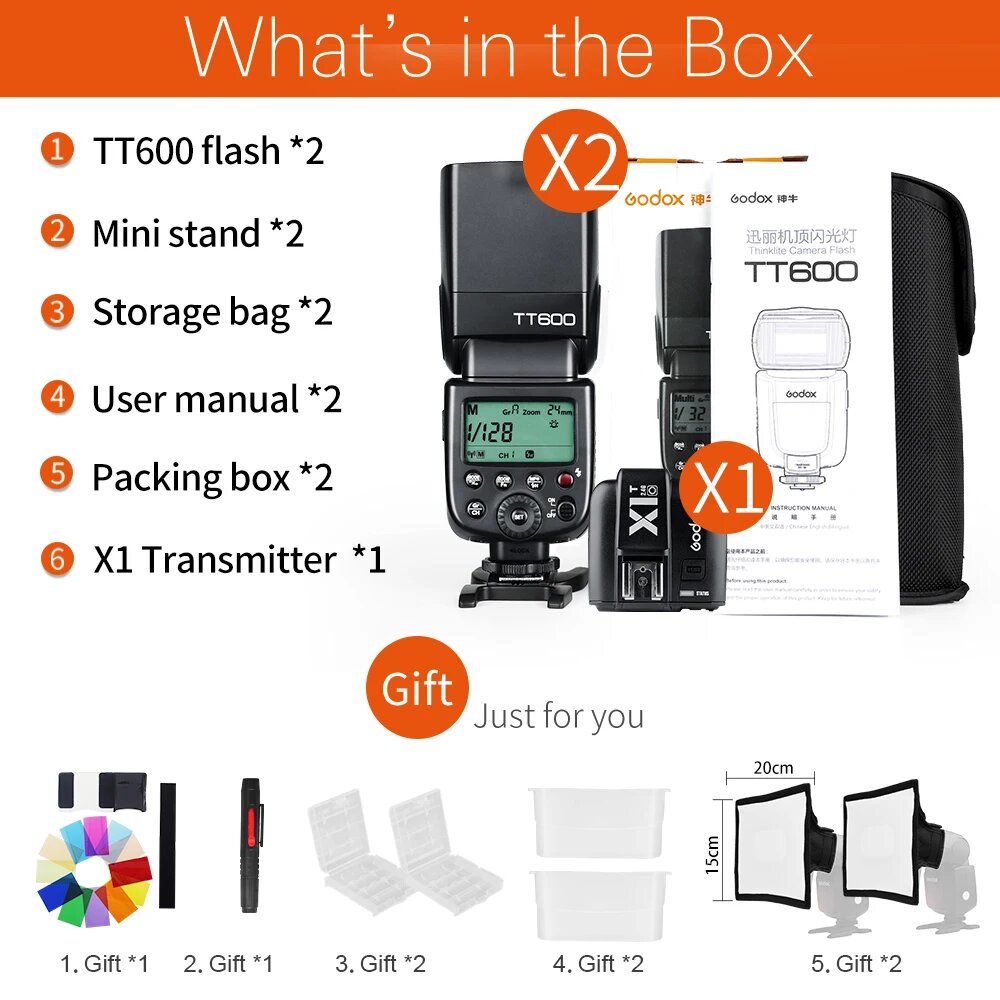 Godox TT600 Беспроводная вспышка 2 шт, 2pcs TT600 and X2T, For Canon интересное: