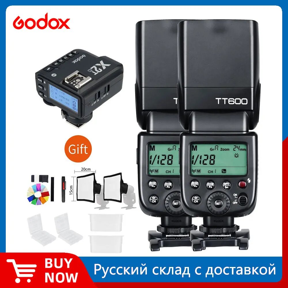 Купить Godox TT600 Беспроводная вспышка 2 шт, 2pcs TT600 and X2T, For Canon