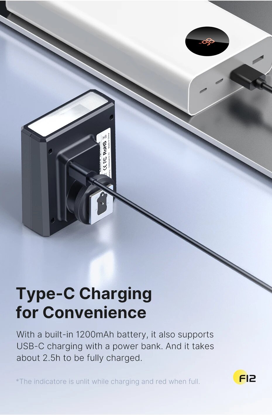 Ulanzi F12 мини-вспышка GN12 5600K, F12 Black интересное: